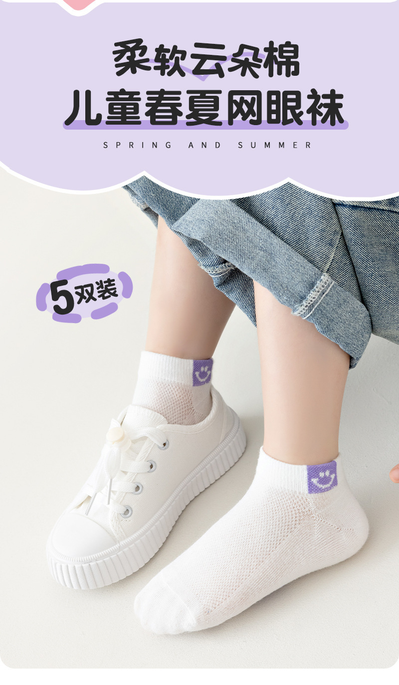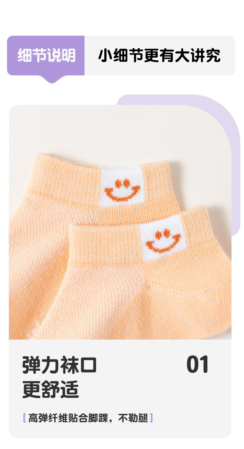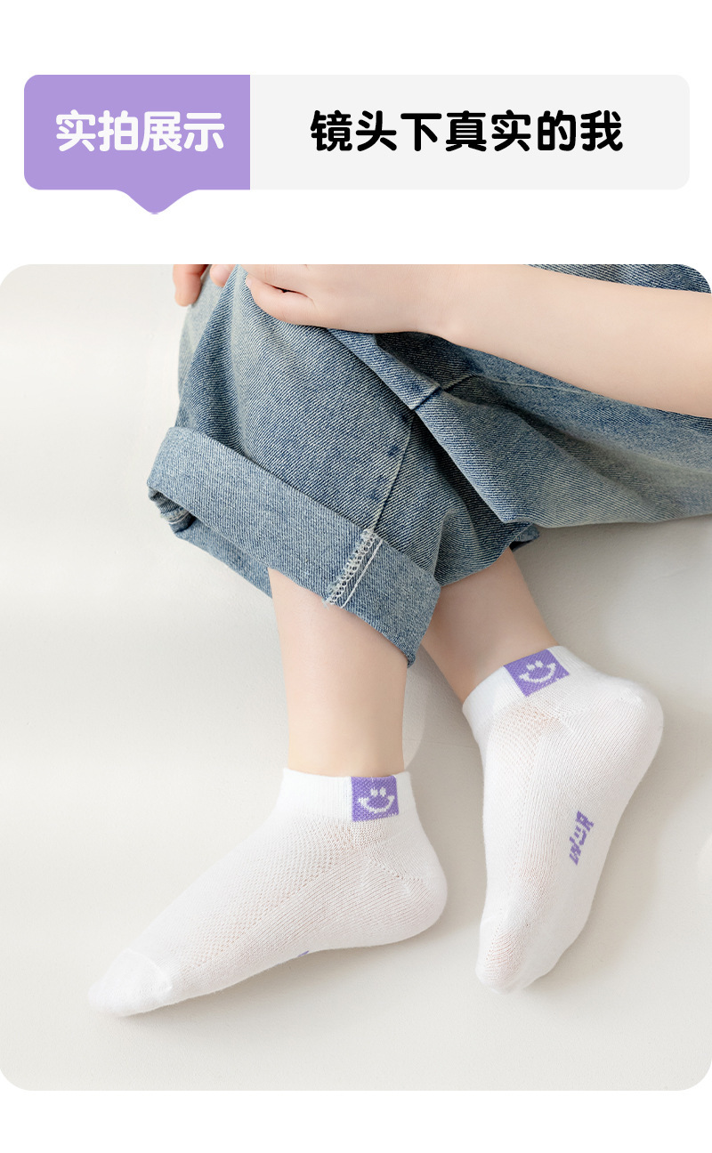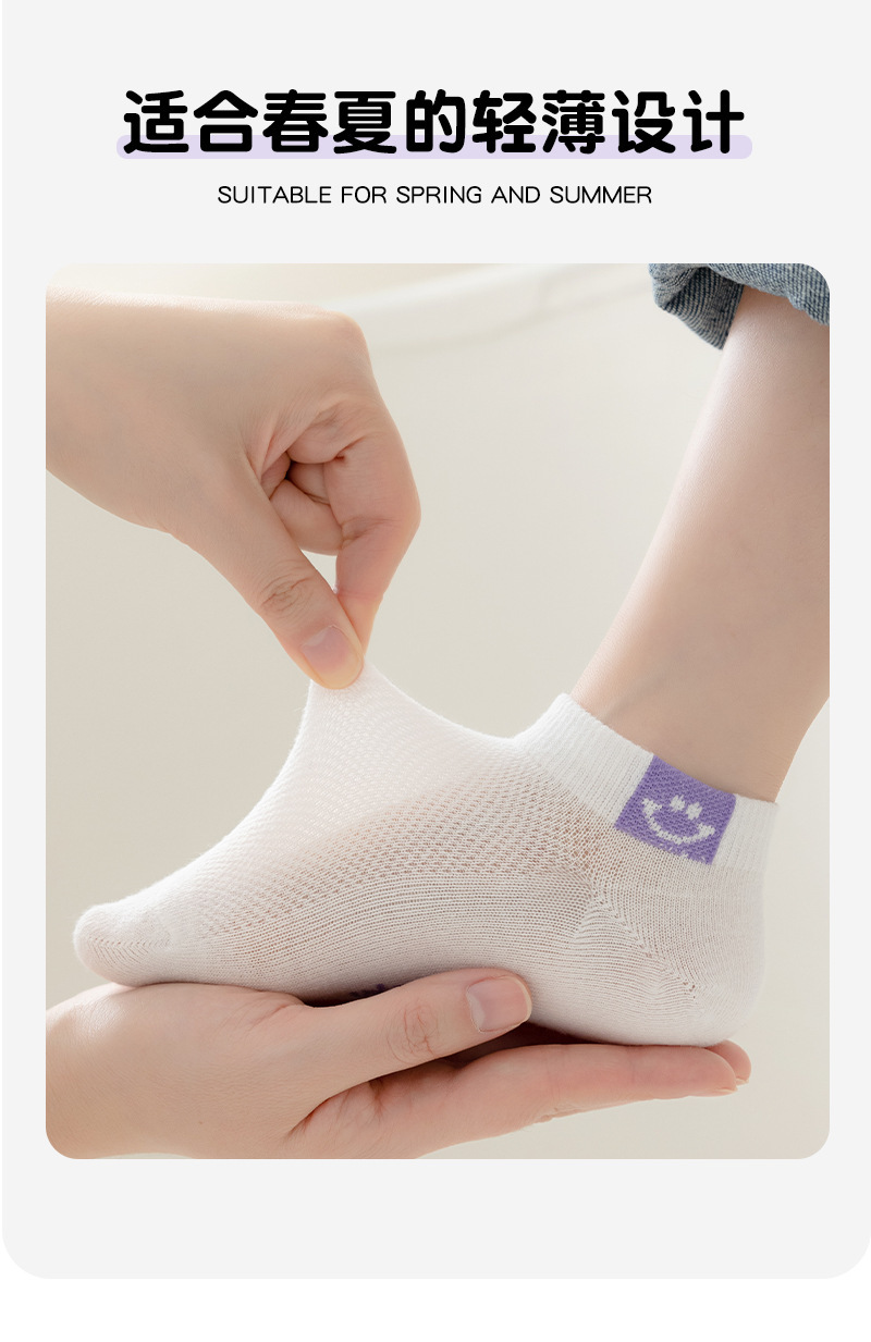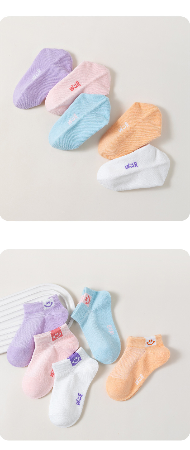 25 년 봄과 여름 새로운 어린이 메쉬 양말 제조 업체 도매 소년 소녀 얇은 통기성 웃는 얼굴 짧은 튜브 보이지 않는 보트 양말스토어 가기