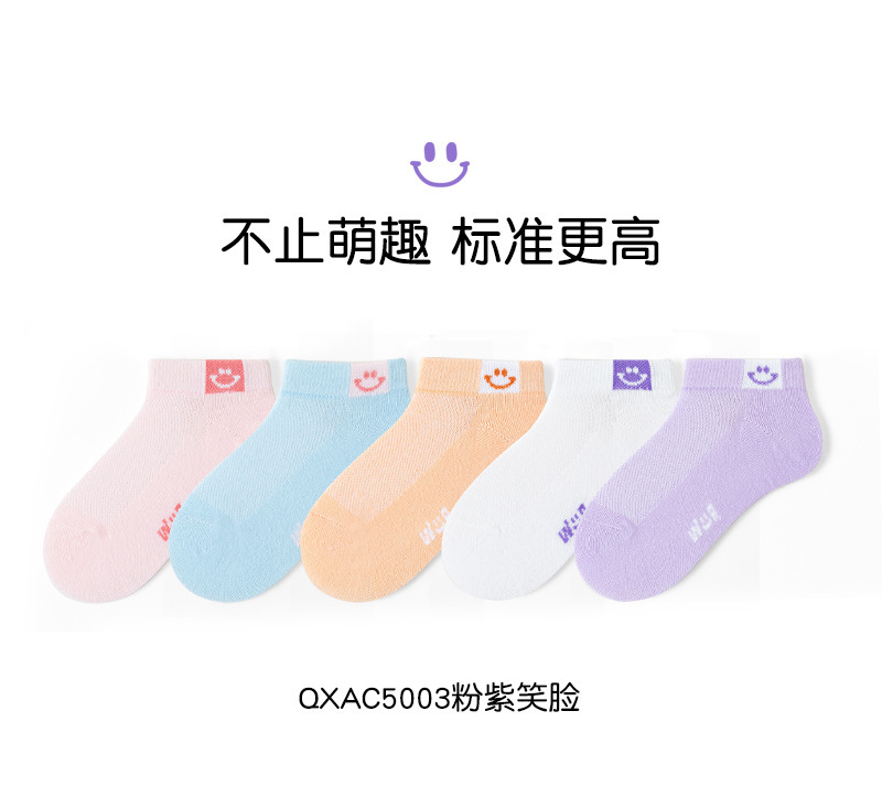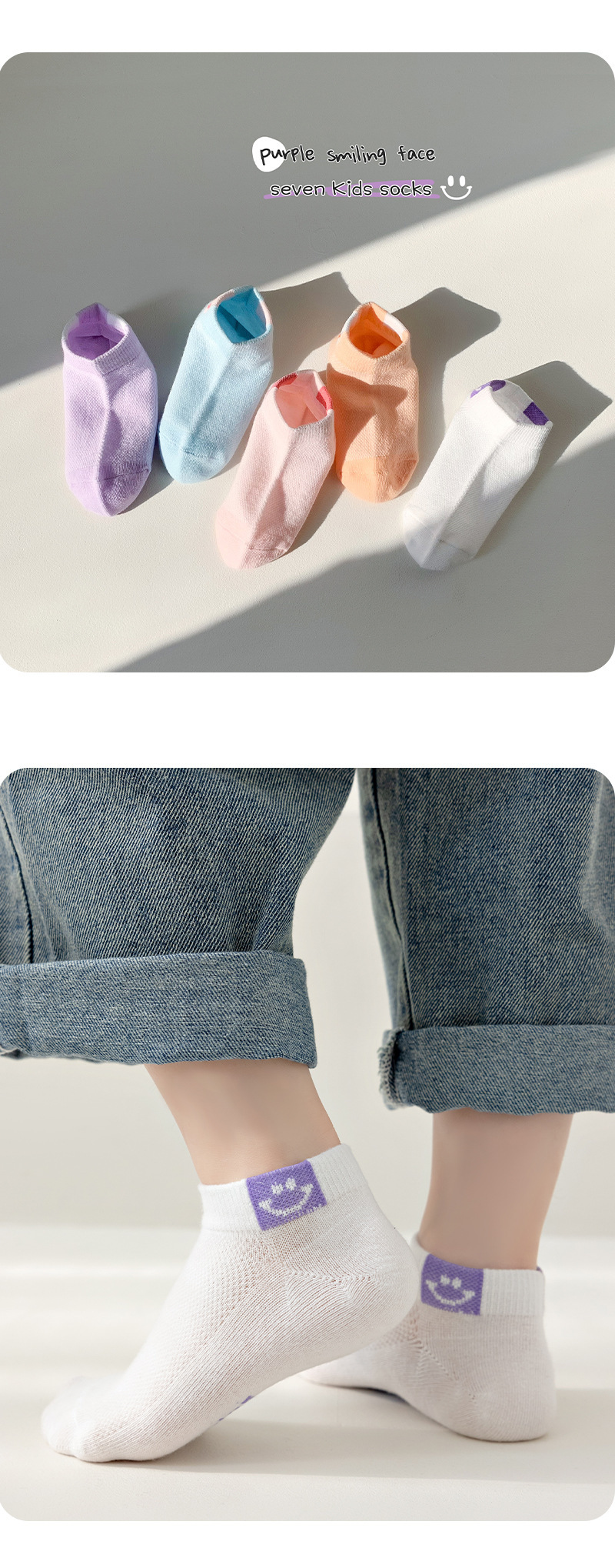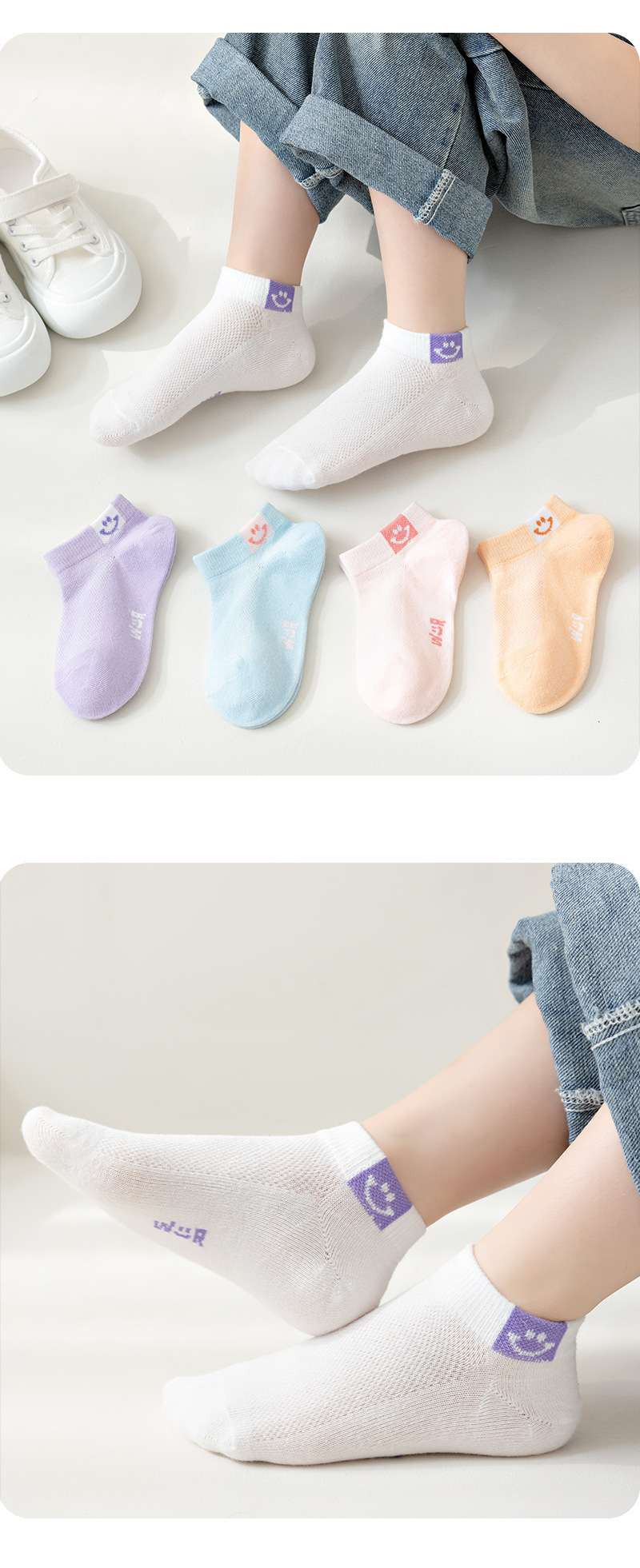 25 년 봄과 여름 새로운 어린이 메쉬 양말 제조 업체 도매 소년 소녀 얇은 통기성 웃는 얼굴 짧은 튜브 보이지 않는 보트 양말