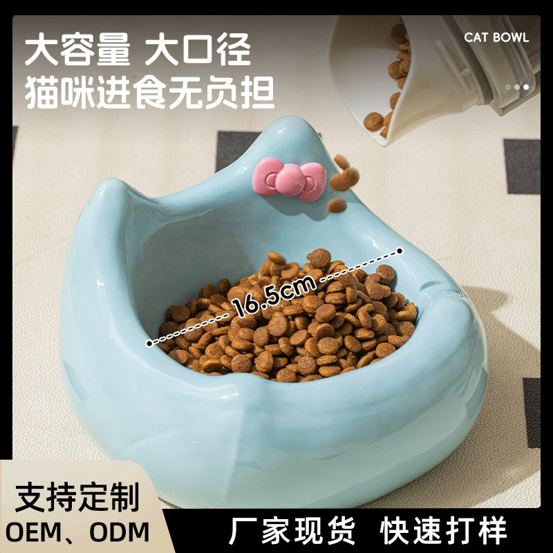 고양이 그릇 세라믹 고양이 음식 분지 고양이 음식 그릇 마시는 물 그릇 개 그릇 애완 동물 쌀 분지 큰 직경 비스듬한 안티 노크스토어 가기