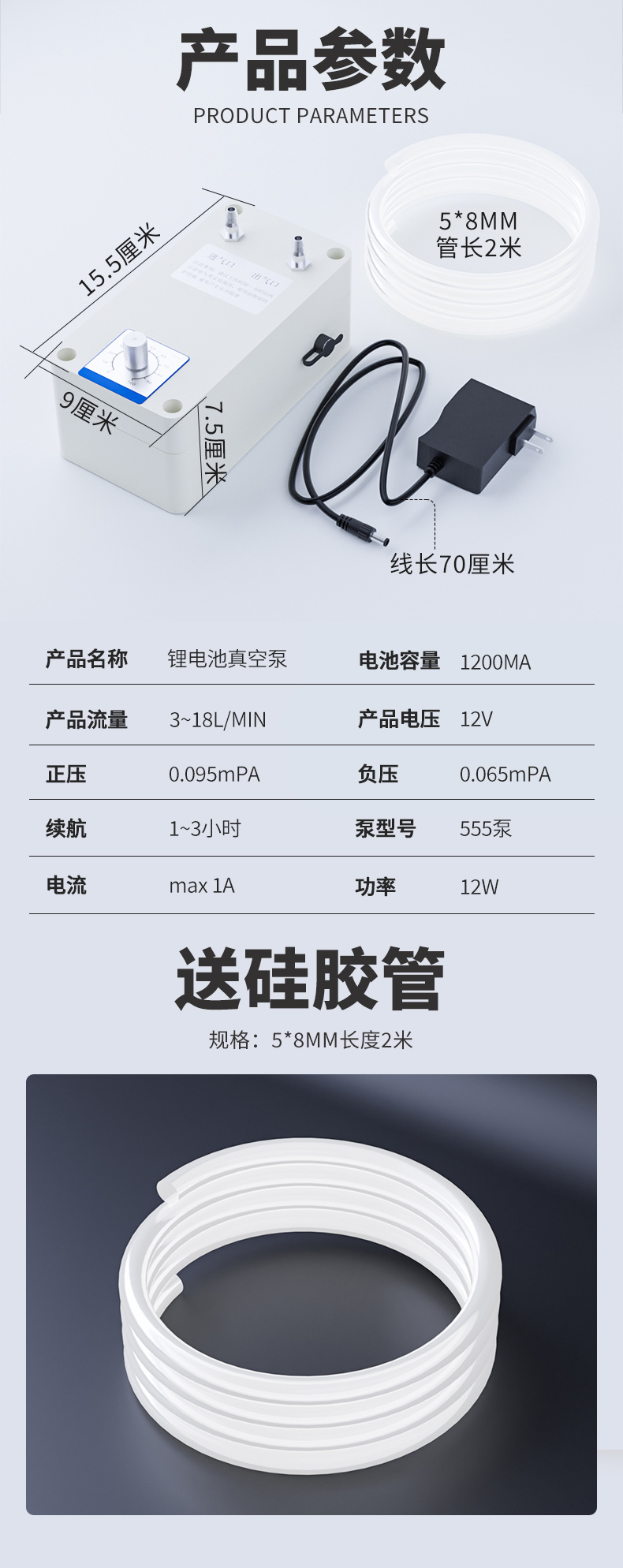 • 3-18L 유량 조절 가능(배터리는 포함되어 있지 않음)