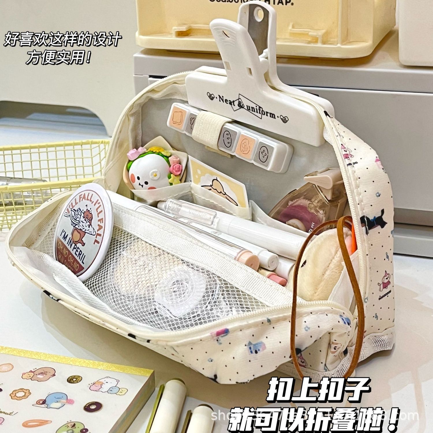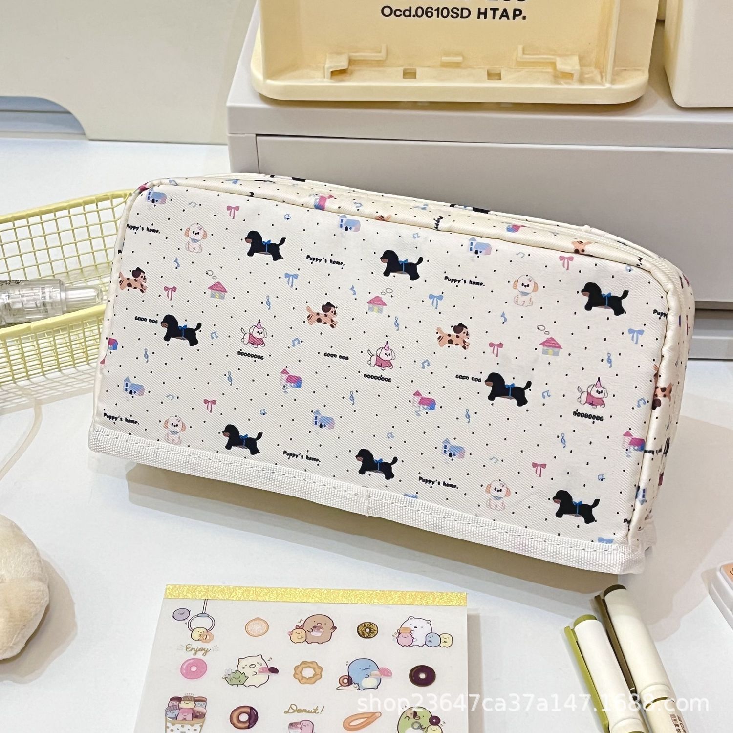 잉크 도트 닥스 훈트 접이식 연필 가방 학생 Ins 높은 색상 가치 대용량 귀여운 만화 문구 보관 연필 가방스토어 가기