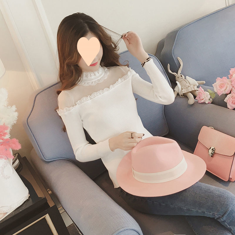 가을과 겨울 착용 섹시한 레이스 레이스베이스 셔츠 슬림핏 하이 넥 올 매치 2025 뉴 솔리드 컬러 롱 슬리브 티셔츠스토어 가기