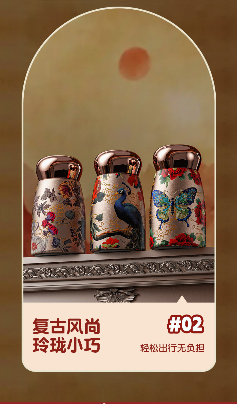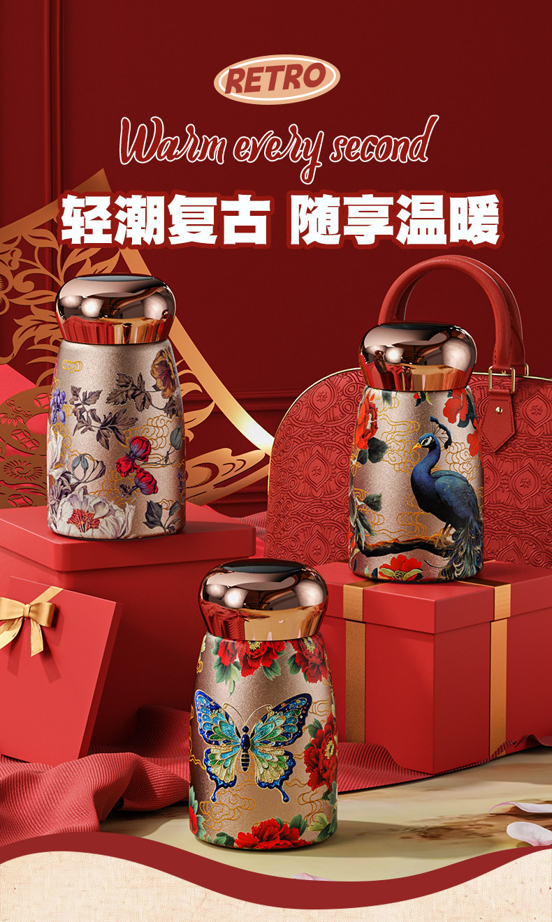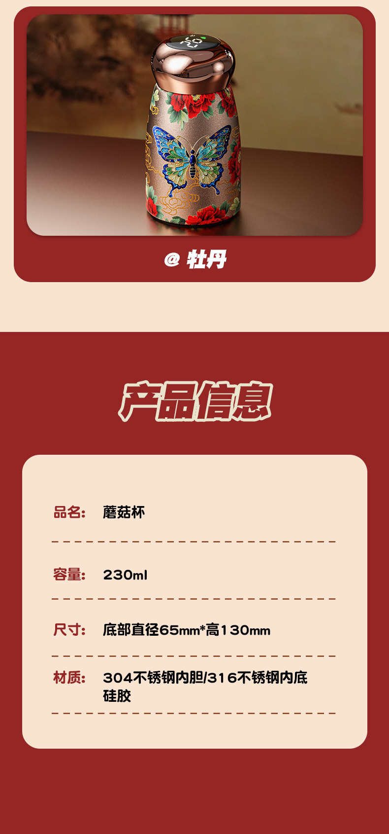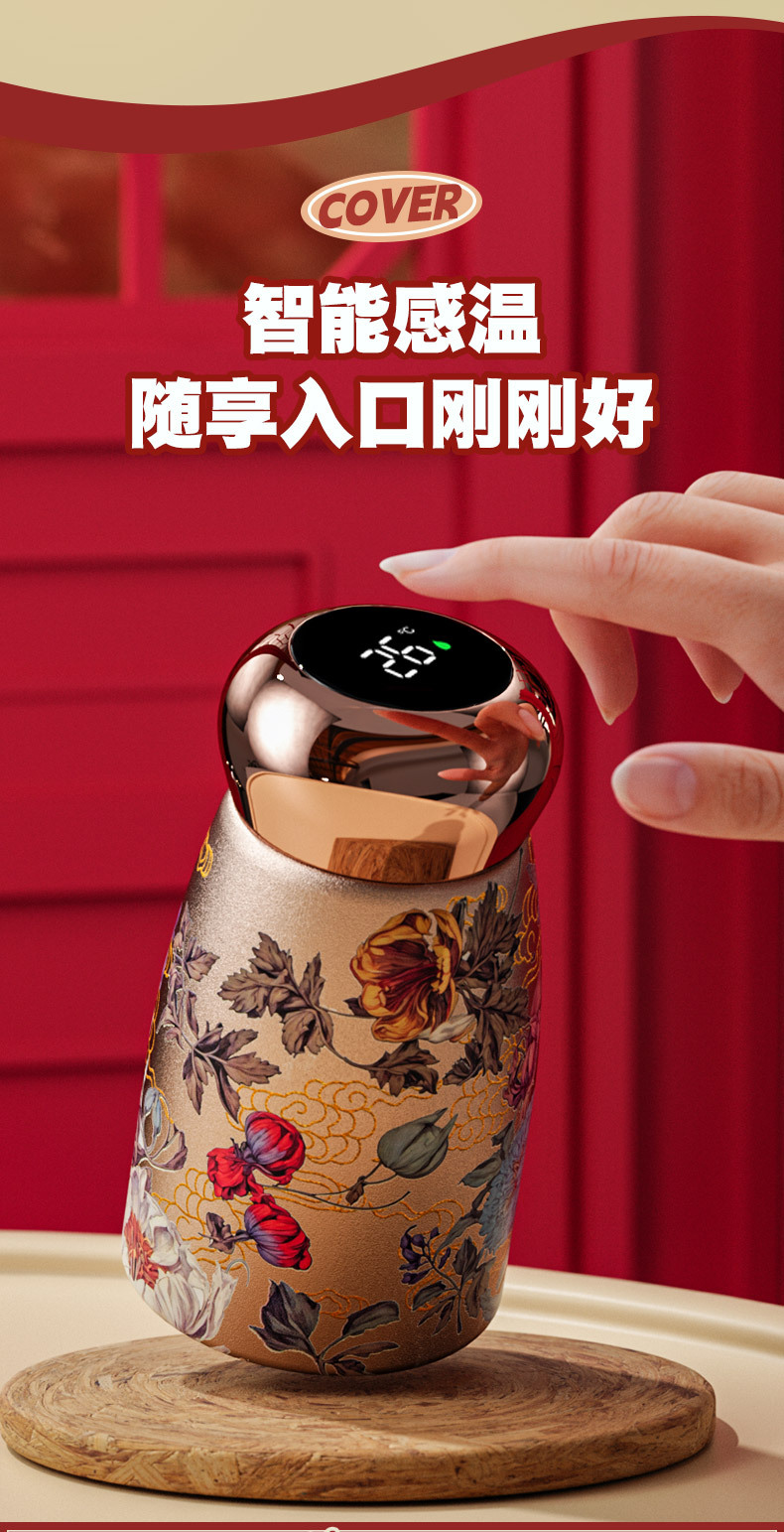 신형 중국풍 레트로 버섯형 316 스테인리스 보온병 소형 포켓컵 스마트 온도 표시 휴대용 물병스토어 가기