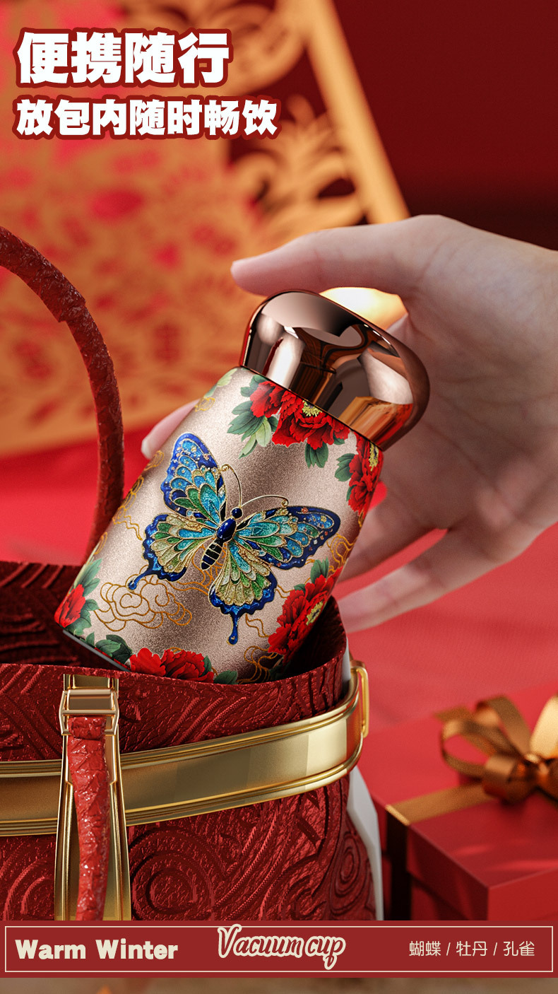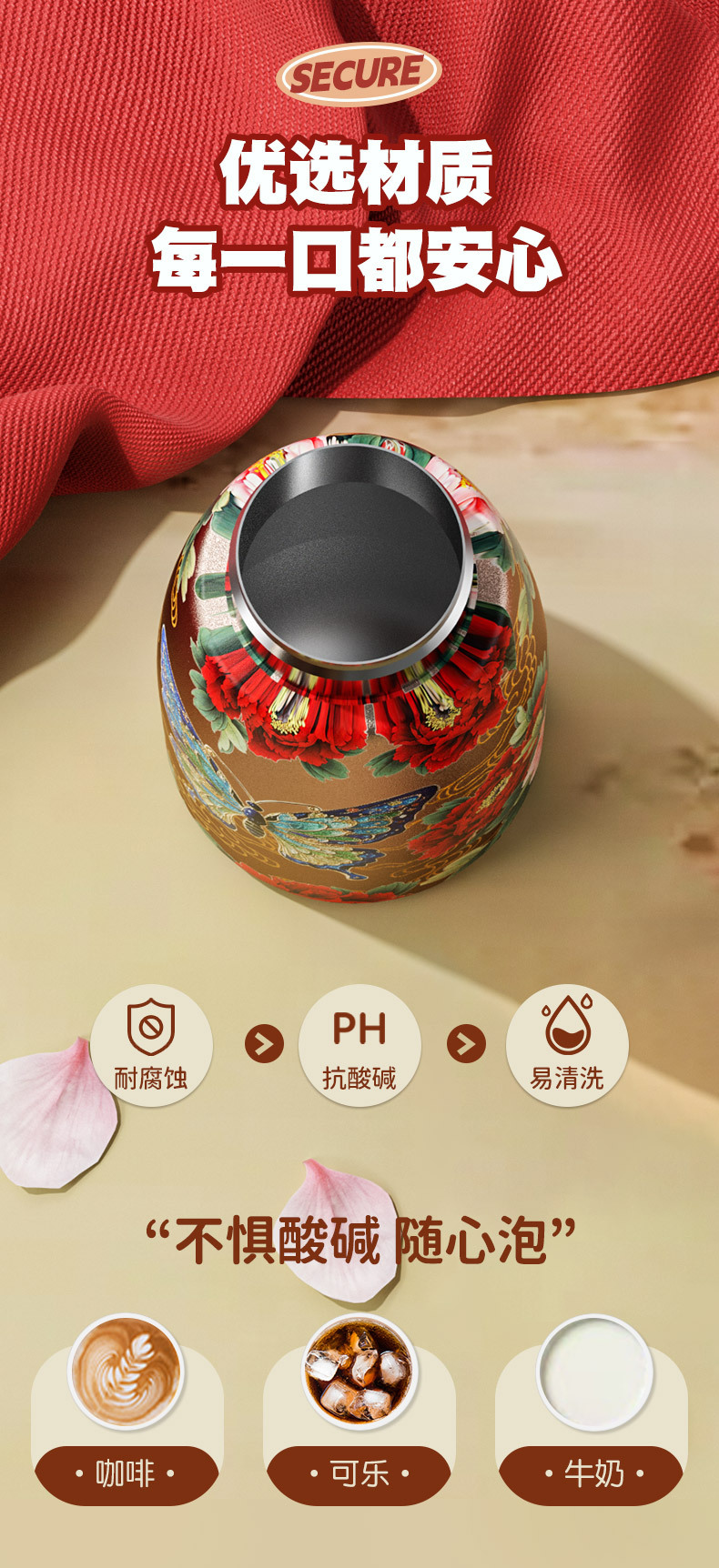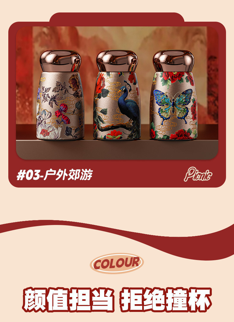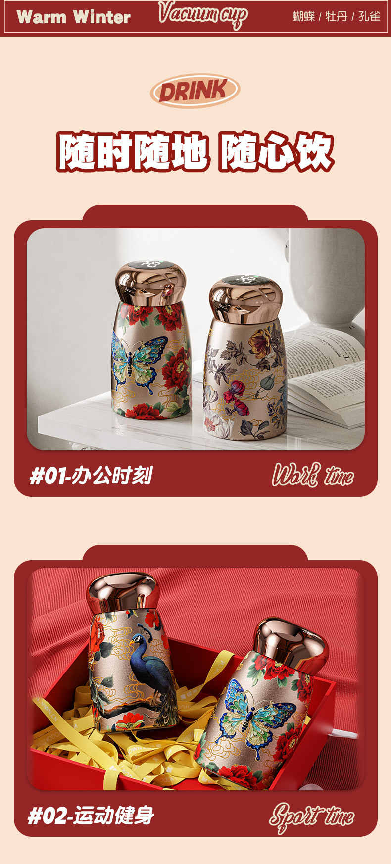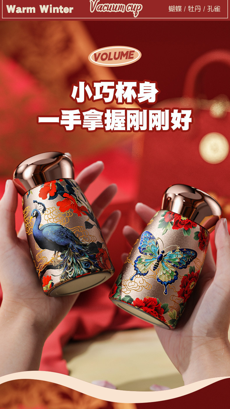신형 중국풍 레트로 버섯형 316 스테인리스 보온병 소형 포켓컵 스마트 온도 표시 휴대용 물병스토어 가기