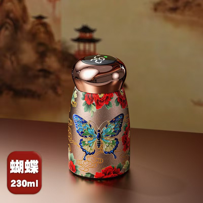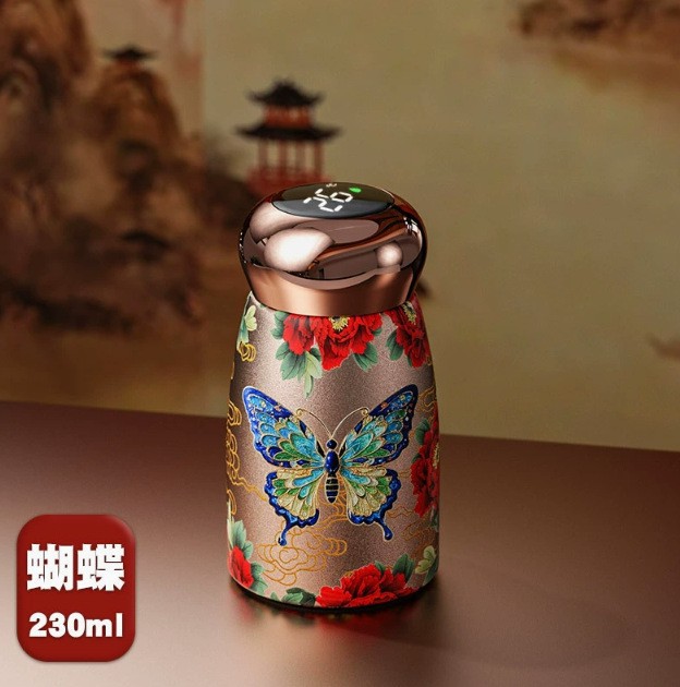 신형 중국풍 레트로 버섯형 316 스테인리스 보온병 소형 포켓컵 스마트 온도 표시 휴대용 물병