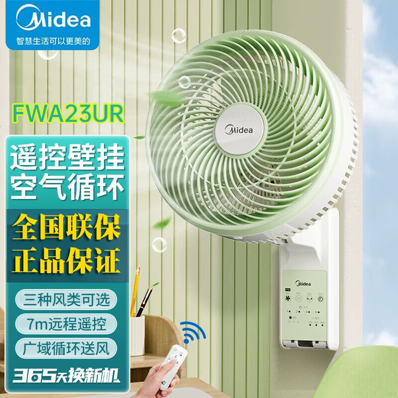 Midea 전기 팬 벽 팬 가구 벽 팬 침실 거실 주방 흔들리는 공기 순환 팬 FWA23UR