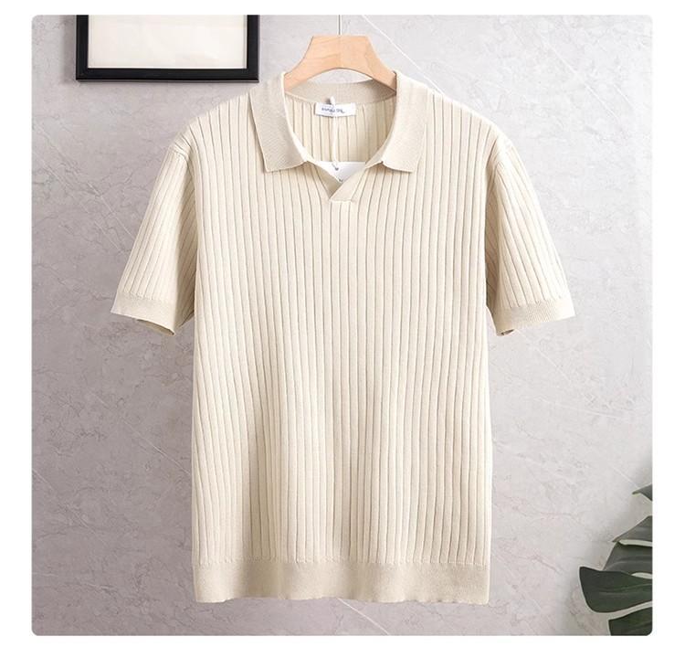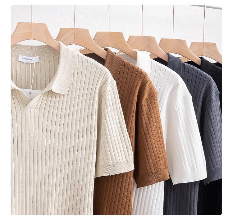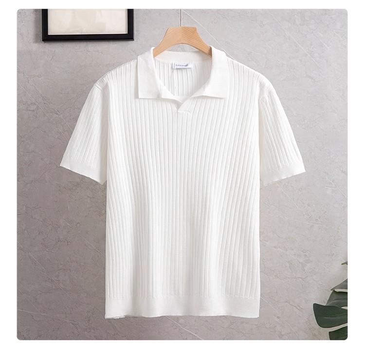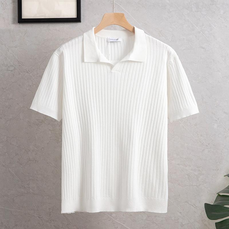 새로운 스트라이프 머서리 니트 여름 남성 대외 무역 조명 비즈니스 캐주얼 패션 올 매치 하프 오픈 칼라 POLO 셔츠