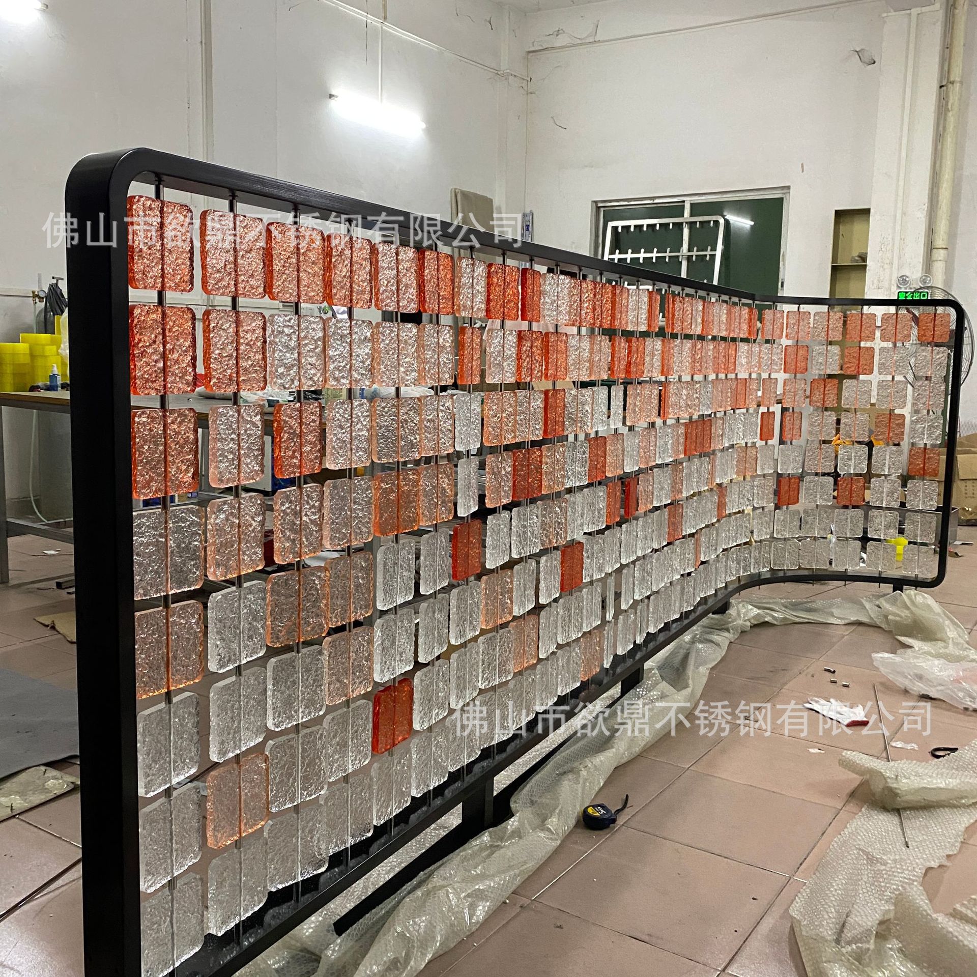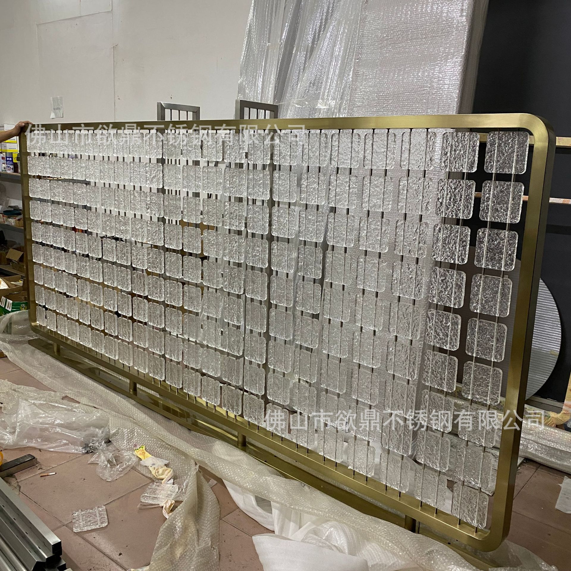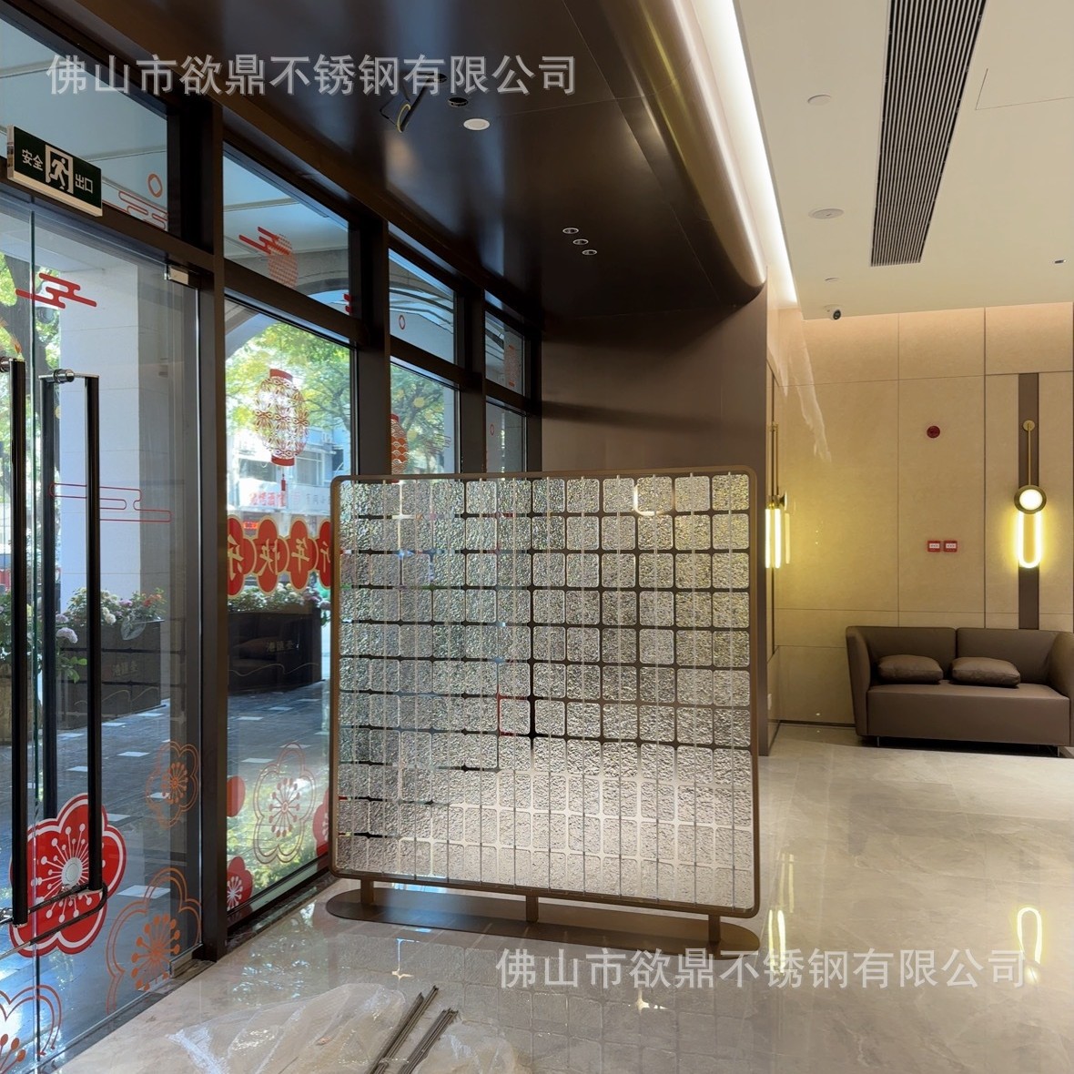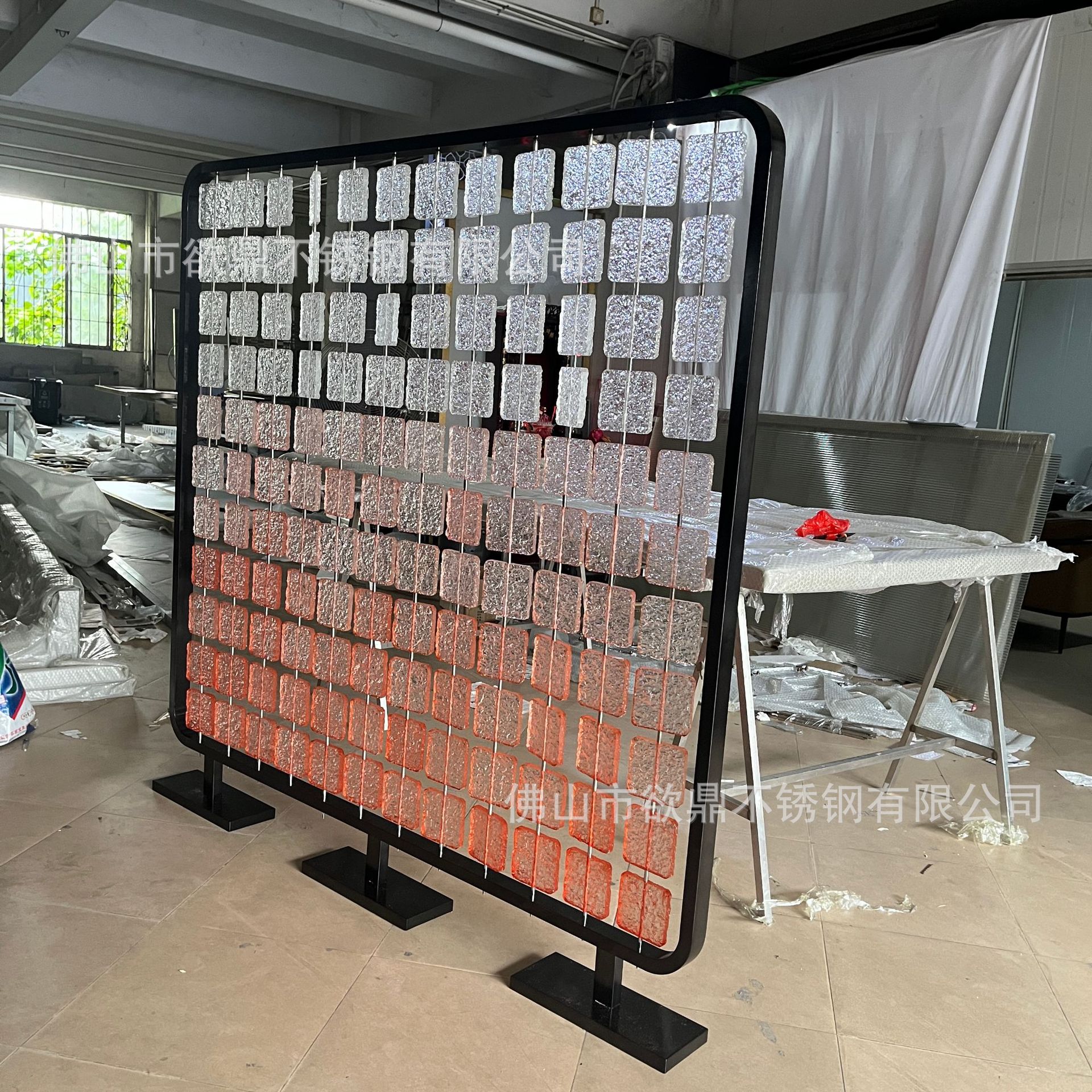 아크릴 파티션 현대 간단한 스테인레스 스틸 크리스탈 유리 교수형 스크린 금속 호텔 레스토랑 카드 입구