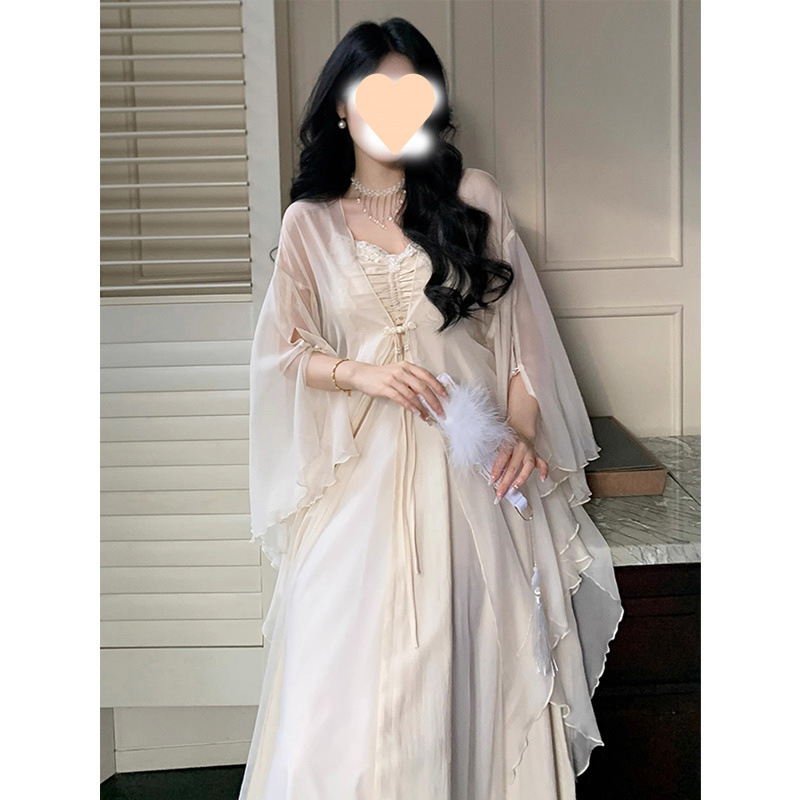 새로운 중국 스타일 우아한 러플 쉬폰 옷 스커트 목도리 코트 툴레 블라우스와 여성 여름 새 스타일 원피스스토어 가기