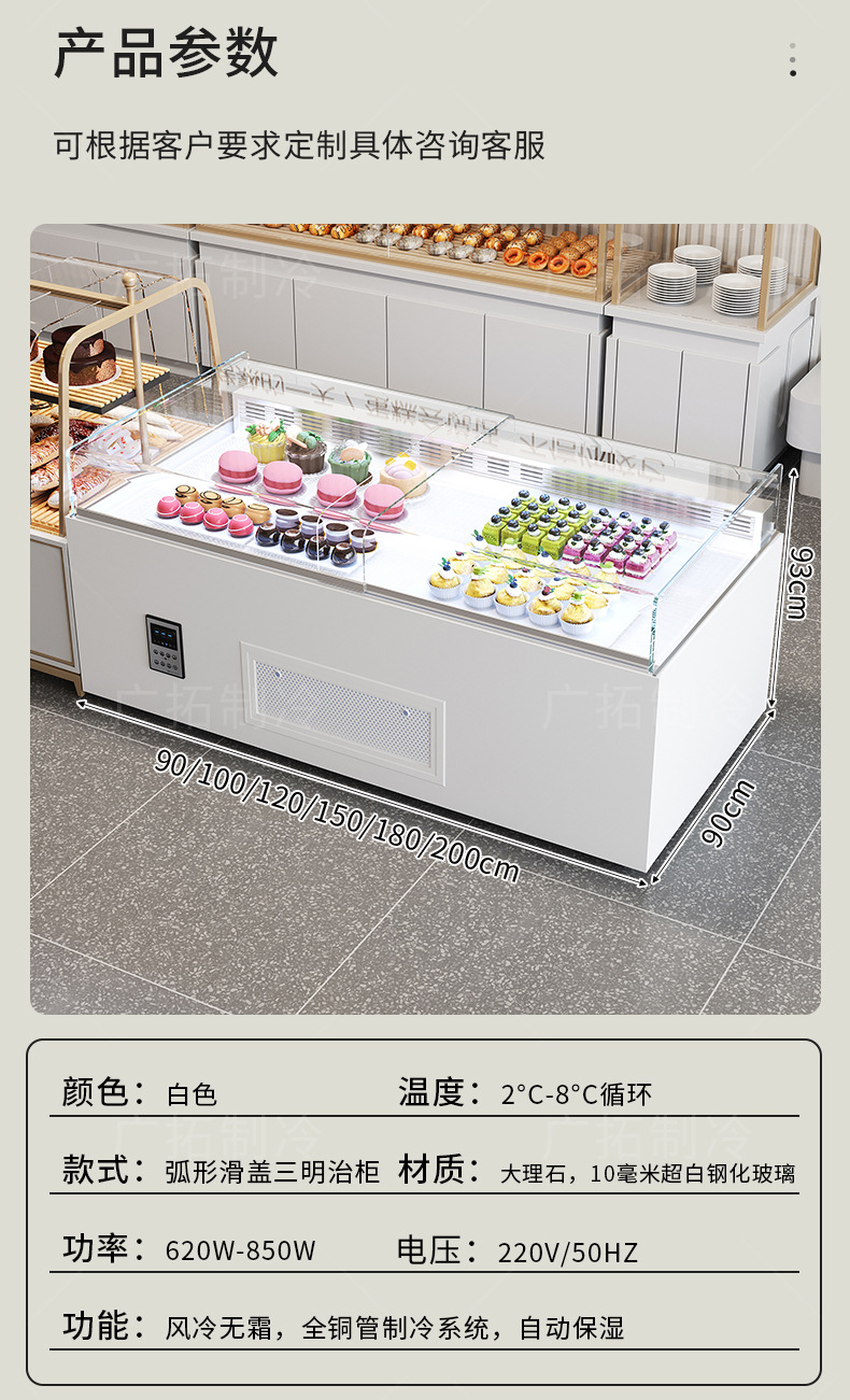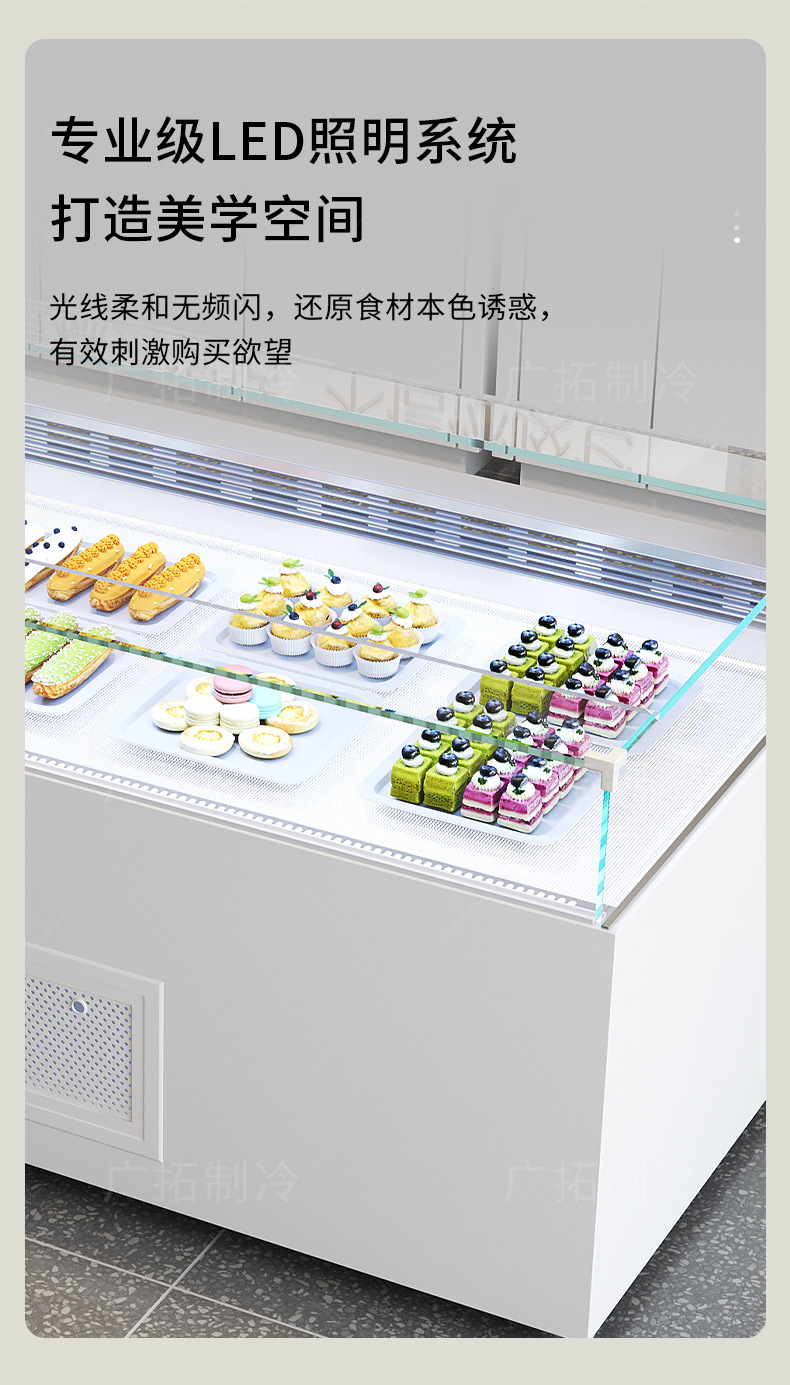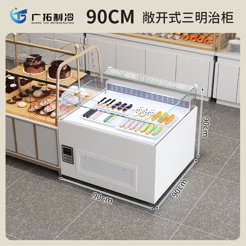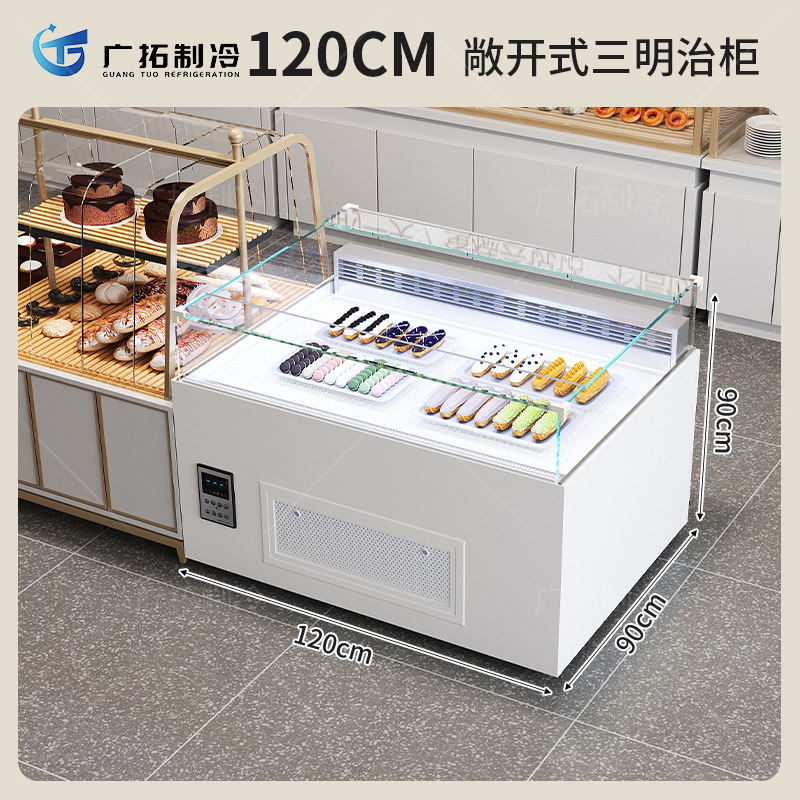 광투 오픈형 샌드위치 케이크 상업용 전시 캐비닛, 스시 아일랜드 캐비닛, 과일 슬라이스 스프레이 냉장