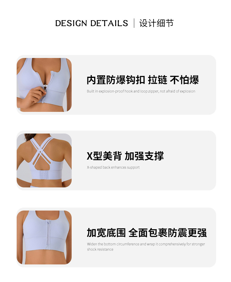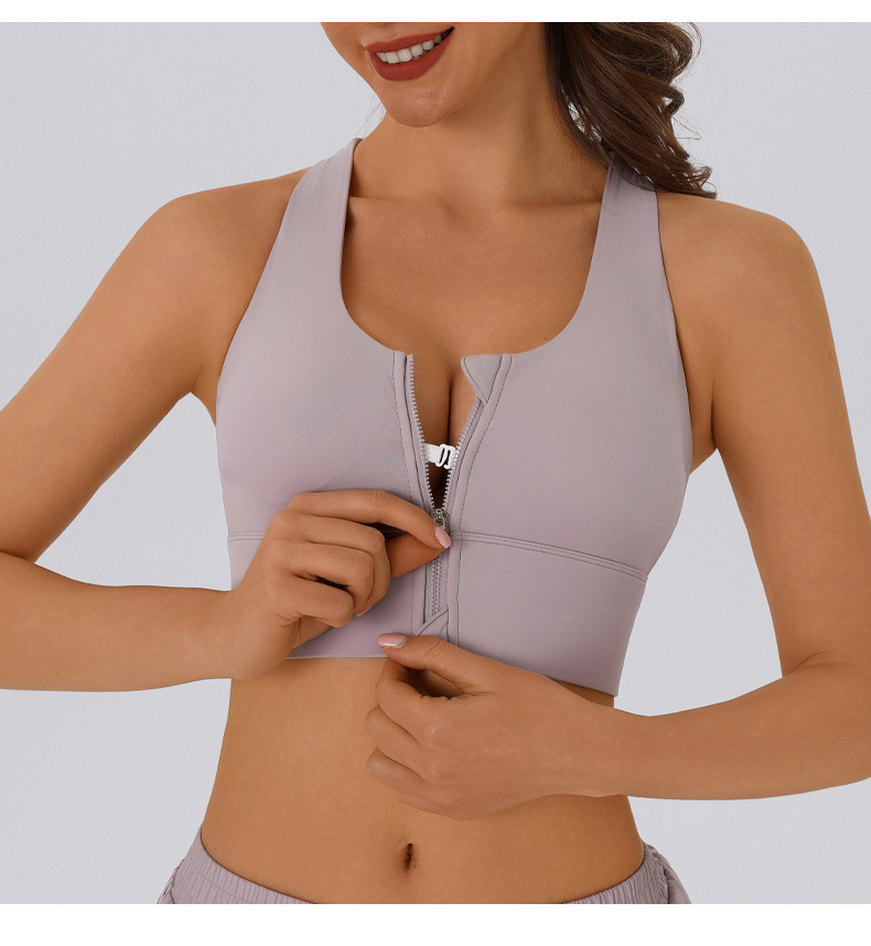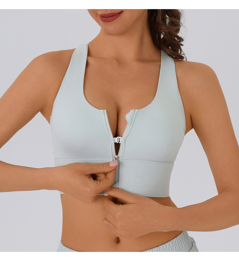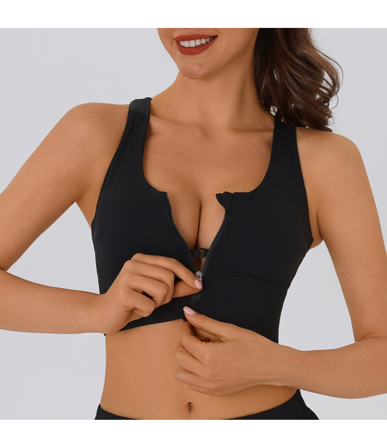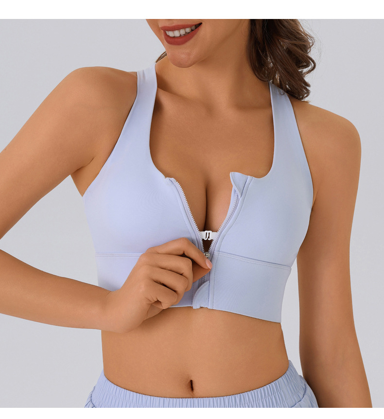 여름 전면 지퍼 고강도 스포츠 브라 여성용 푸시 업 충격 방지 탈착식 피트니스 트레이닝 요가 조끼 브라