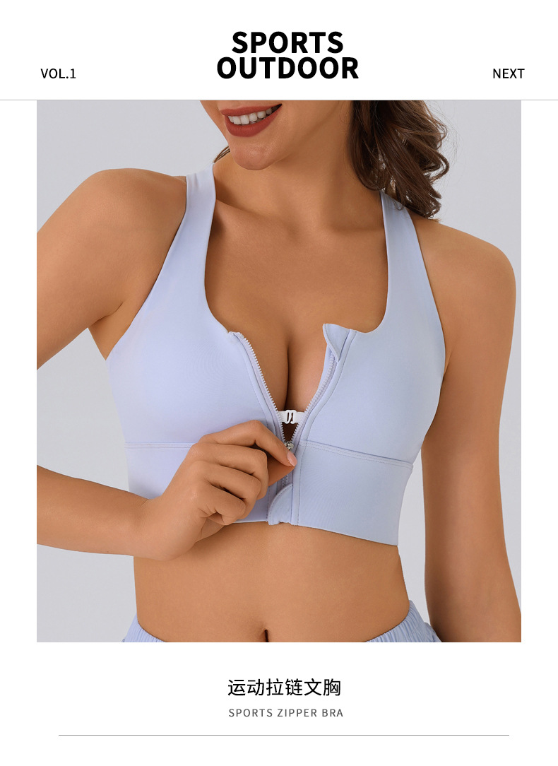 여름 전면 지퍼 고강도 스포츠 브라 여성용 푸시 업 충격 방지 탈착식 피트니스 트레이닝 요가 조끼 브라스토어 가기