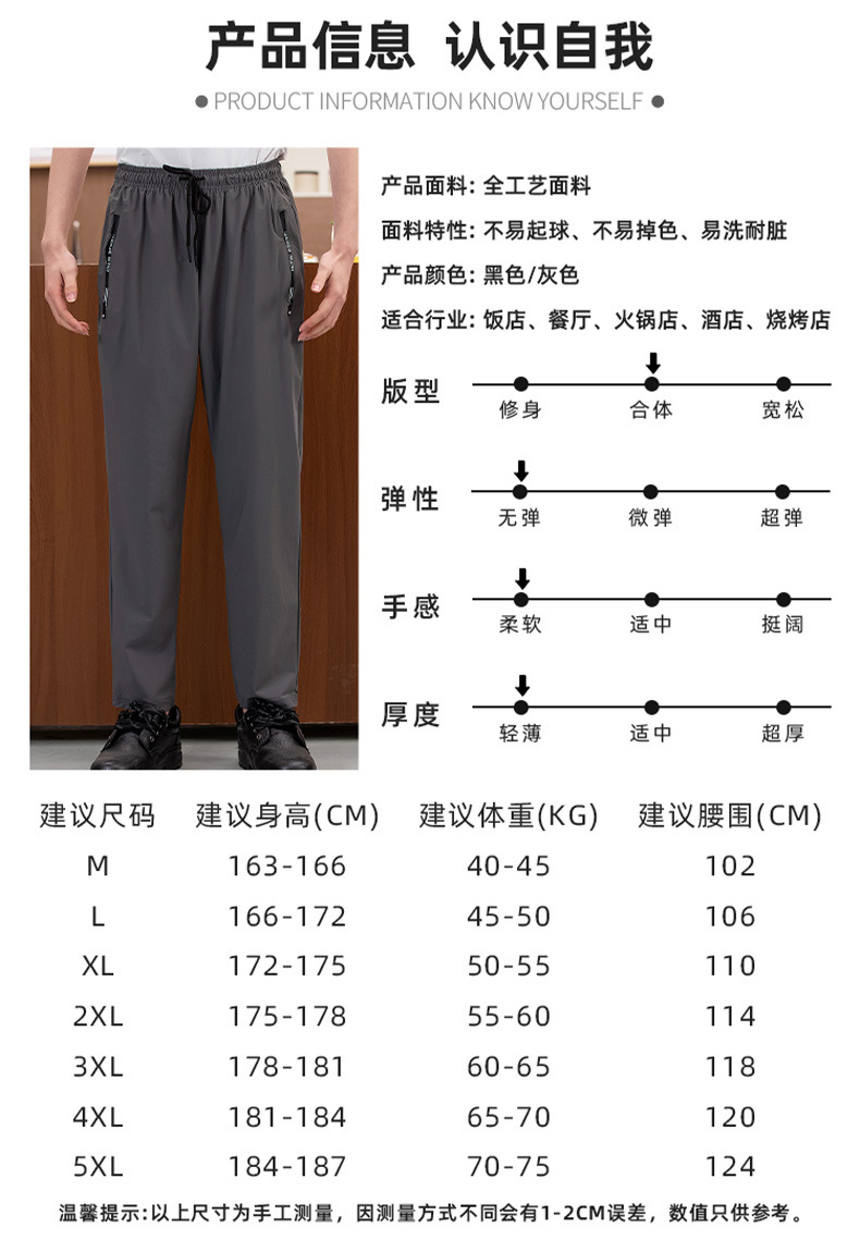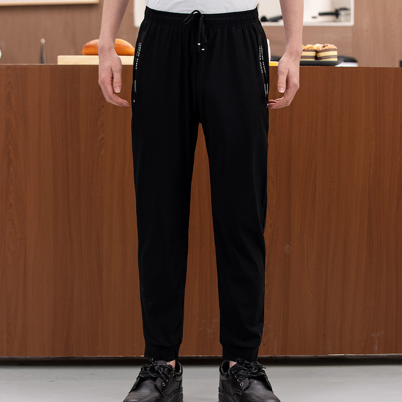 가을과 겨울 완전 탄성 허리 작업 여성 바지 바지 새로운 블랙 전문 작은 발 직선 웨이터 작업 바지 남성