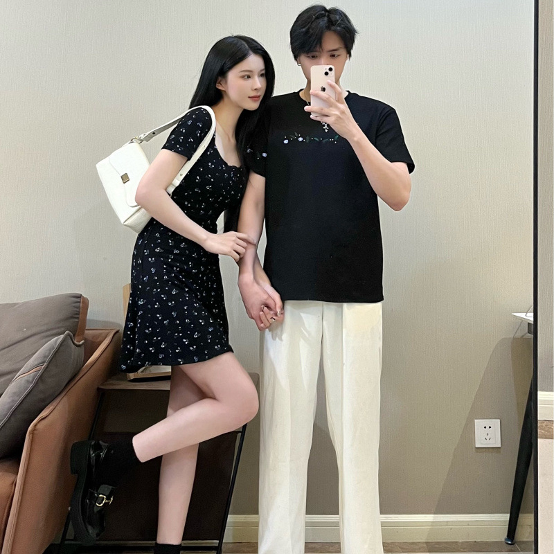 2025 여름 새 커플 원피스 짧은 소매 뜨거운 소녀 원피스 니트 꽃 원피스 짧은 소매스토어 가기