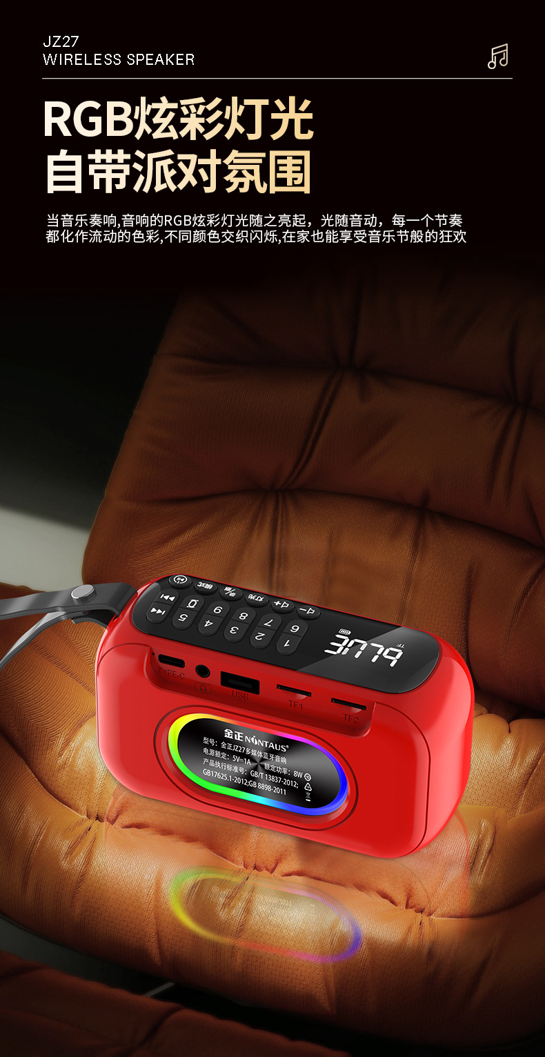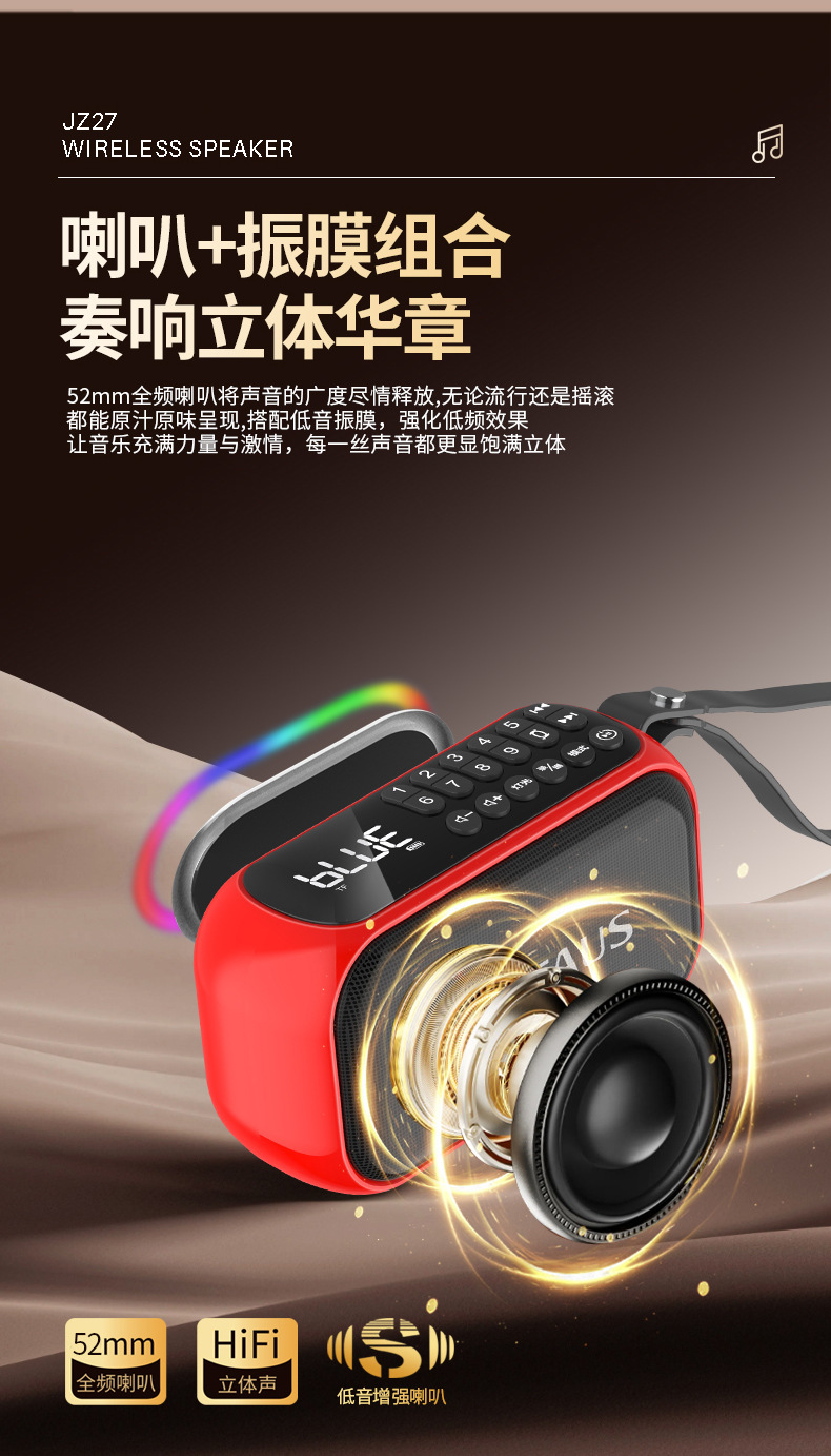 Jinzheng JZ27 무선 블루투스 스피커 휴대용 야외 홈 오디오 자동차 오버 웨이트 서브 우퍼 내부 녹음스토어 가기