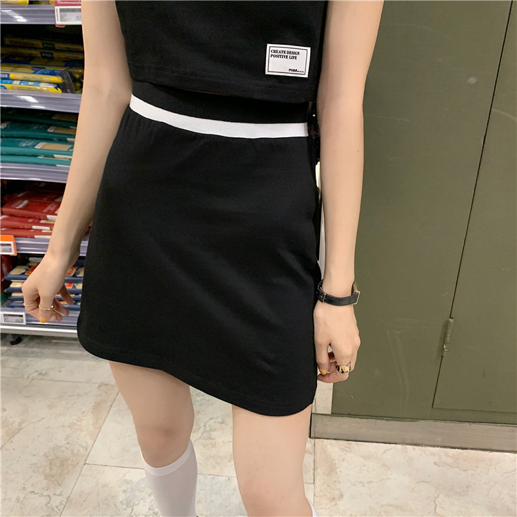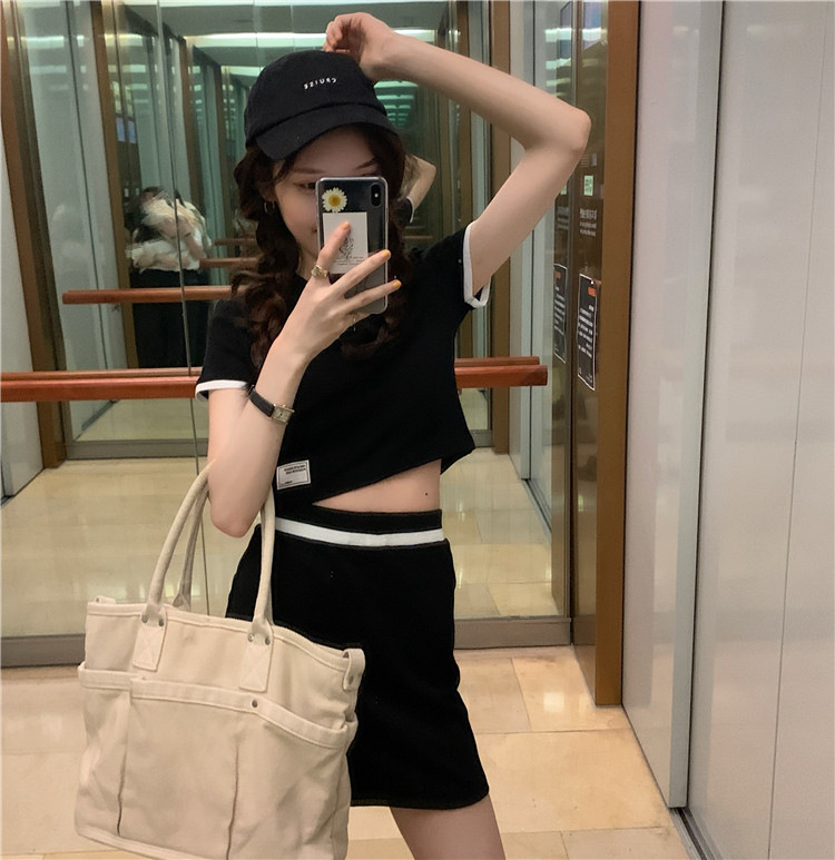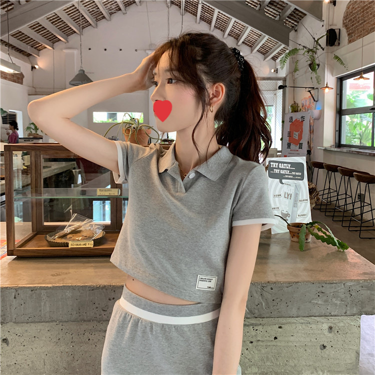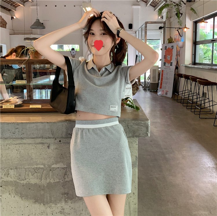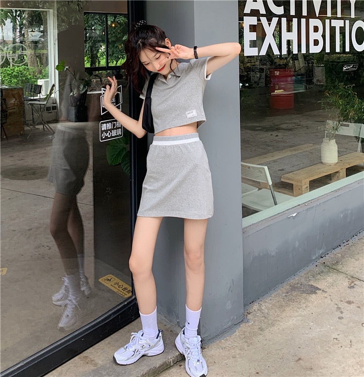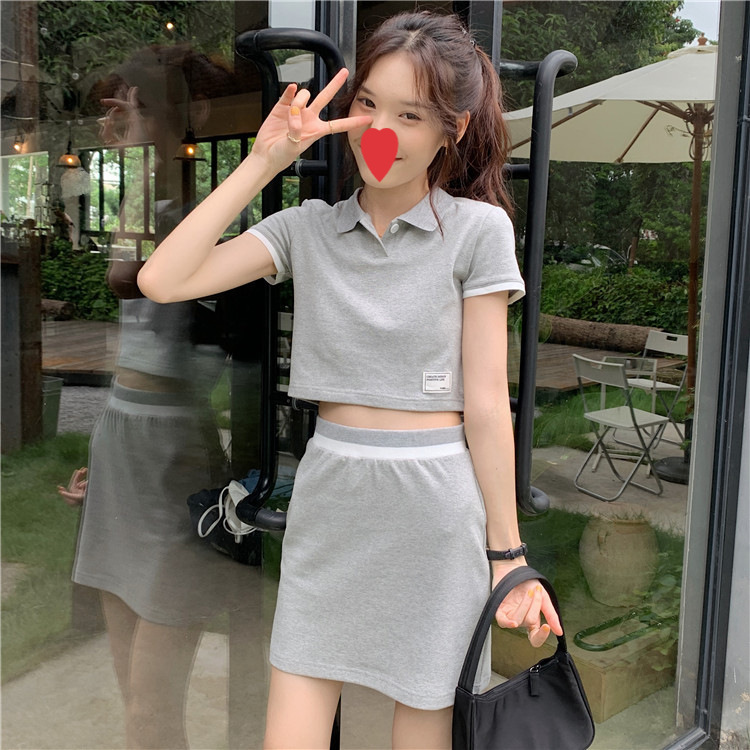인터넷 축하 폭발 여름 슬림 폴로 칼라 쇼트 탑 하이 웨이스트 힙 스커트 컬러 투피스 세트 여성 패션스토어 가기
