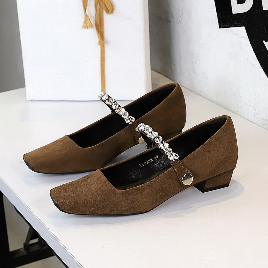 8292-K115 유럽과 미국의 메리 제인 신발 스퀘어 스웨이드 두꺼운 발 뒤꿈치 얕은 입 단일 신발 라인 스톤 낮은 발 뒤꿈치 여성 신발