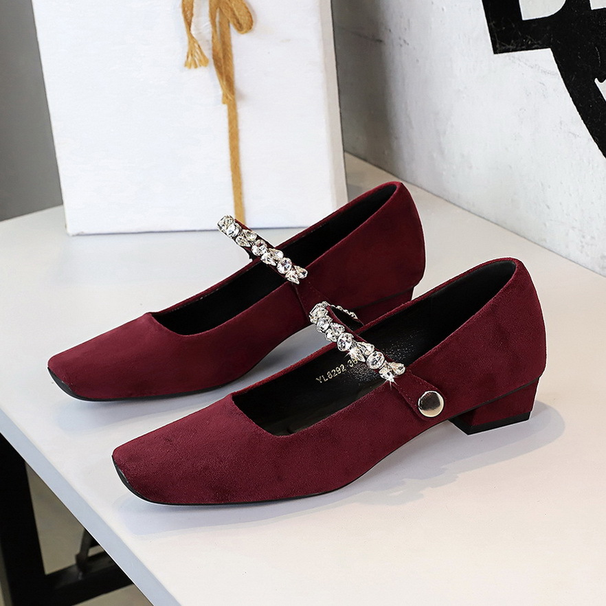 8292-K115 유럽과 미국의 메리 제인 신발 스퀘어 스웨이드 두꺼운 발 뒤꿈치 얕은 입 단일 신발 라인 스톤 낮은 발 뒤꿈치 여성 신발스토어 가기