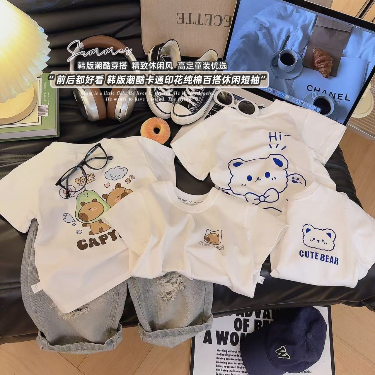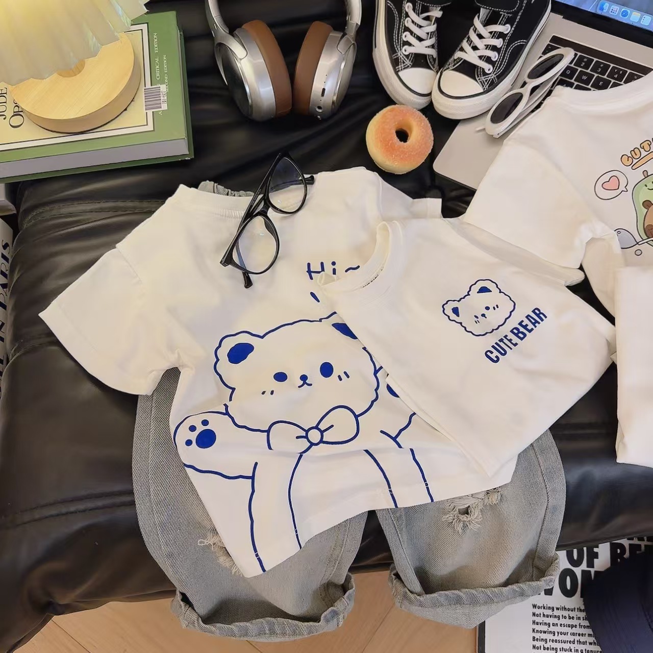 어린이 봄과 가을 면화 반팔 운동복 소년 소녀 캐주얼 티셔츠 아기의 서양식 만화 기지 어린이 탑스토어 가기