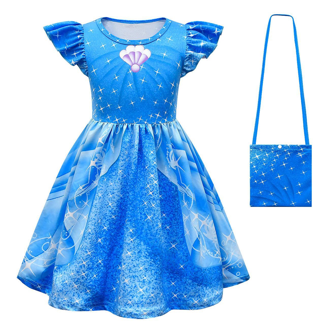 여름 신디 알로 아리엘 공주 소녀 비행 슬리브 원피스 A-라인 원피스 어린이 원피스 80766스토어 가기