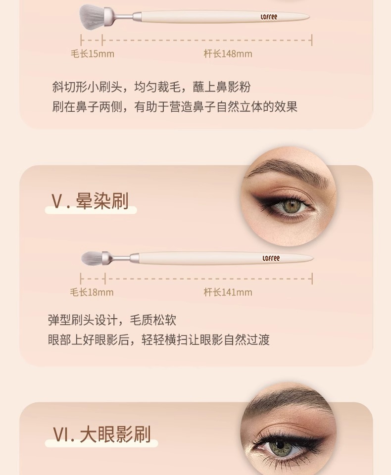 로프리 로프리 테일 메이크업 브러쉬 재단 메이크업 브러쉬 레드 파우더 고광택 소프트 브러시 세트 7 팩