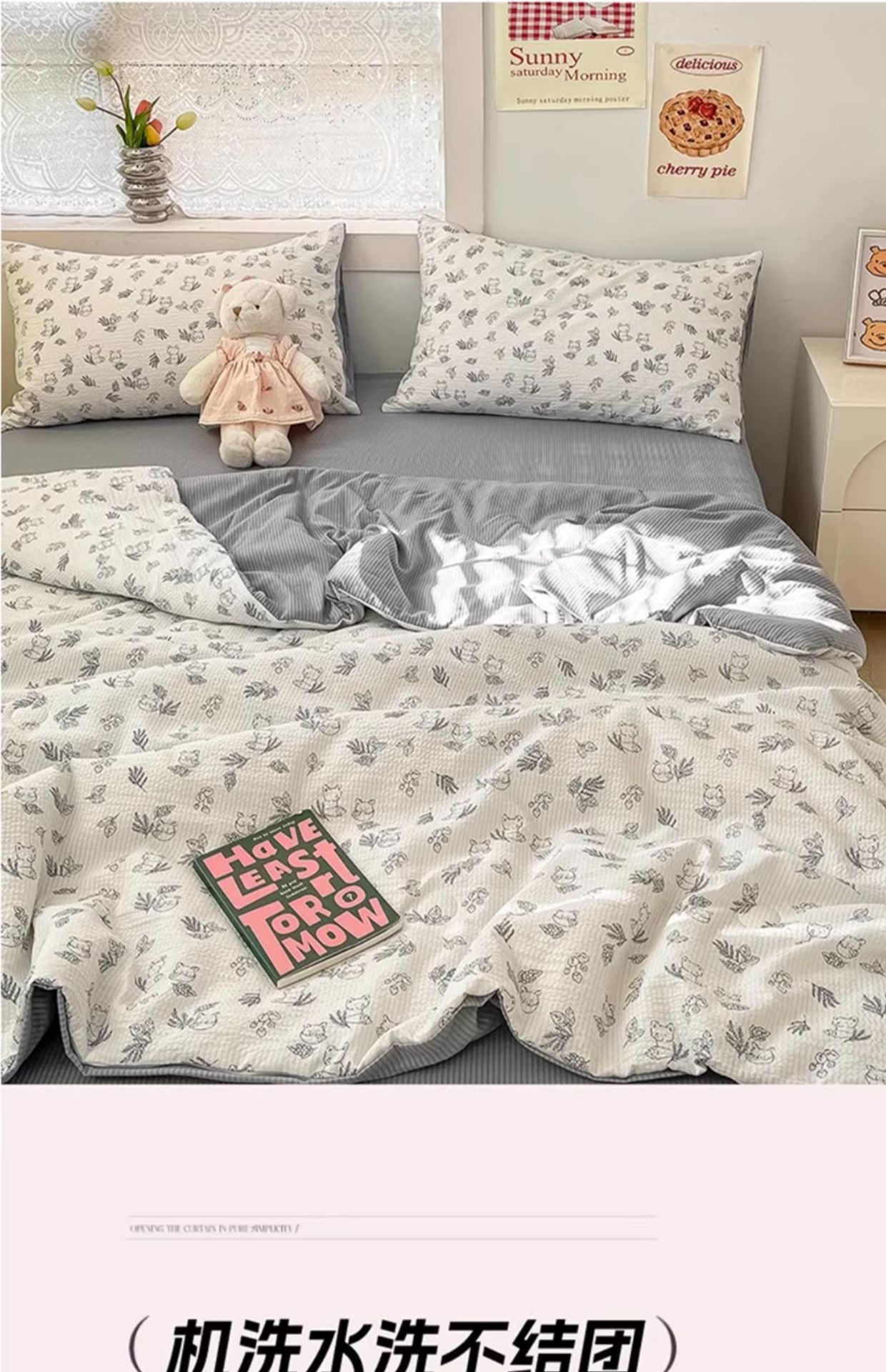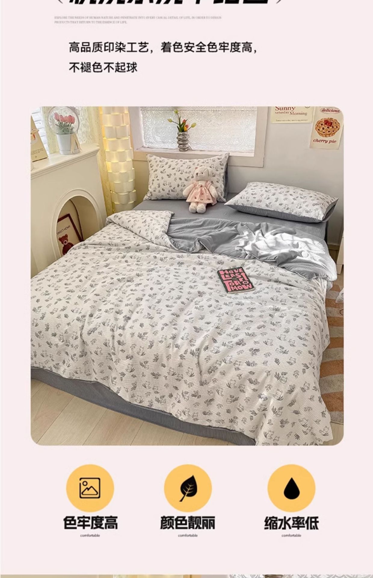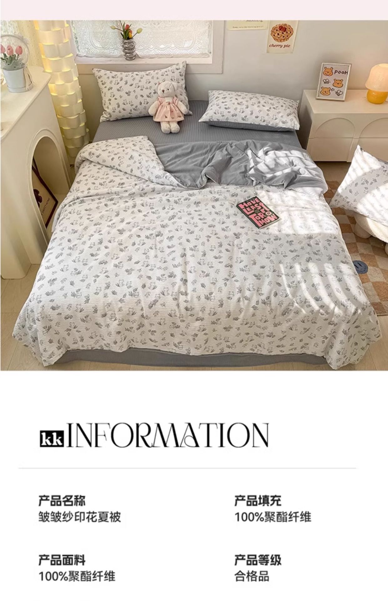클래스 A 구겨진 원사 여름 이불 에어컨 이불 싱글 기숙사 얇은 이불 2025 새로운 여름 시원한 이불 4 피스 세트 기계 세척 가능스토어 가기