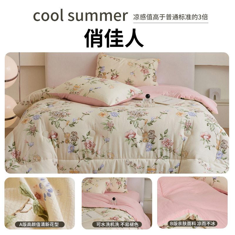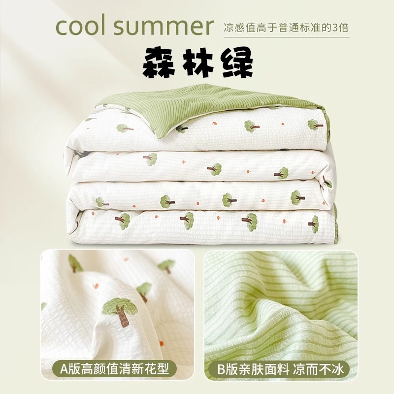 클래스 A 구겨진 원사 여름 이불 에어컨 이불 싱글 기숙사 얇은 이불 2025 새로운 여름 시원한 이불 4 피스 세트 기계 세척 가능