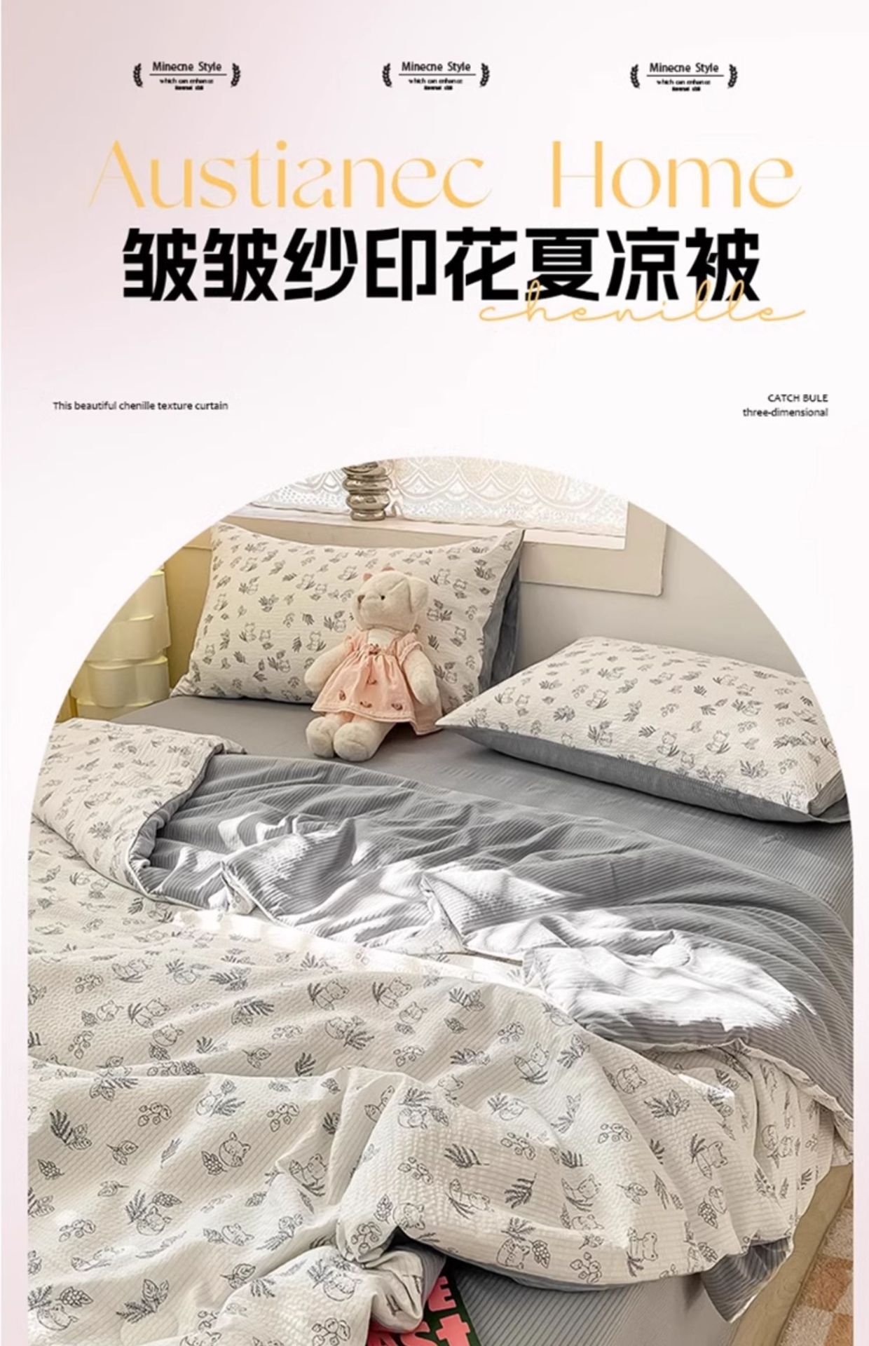 • 200*230cm 3종세트 [여름이불+같은스타일 베갯잇 2개]