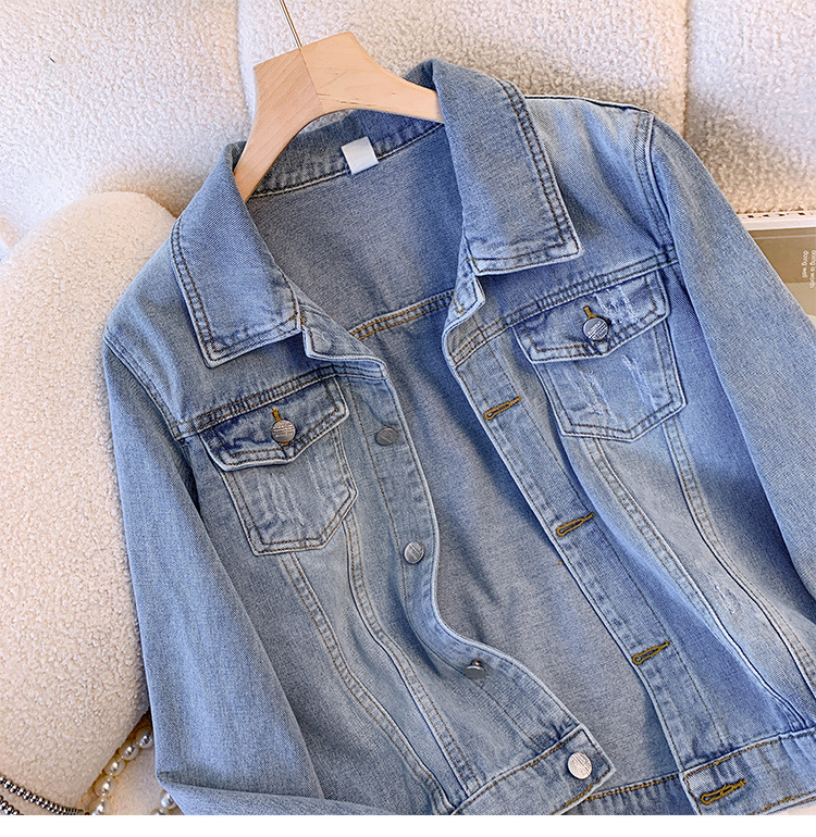 빈티지 슬림 핏 데님 코트 여성 봄과 가을 2024 새로운 느슨한 슬림 핏 올 매치 재킷 캐주얼 탑