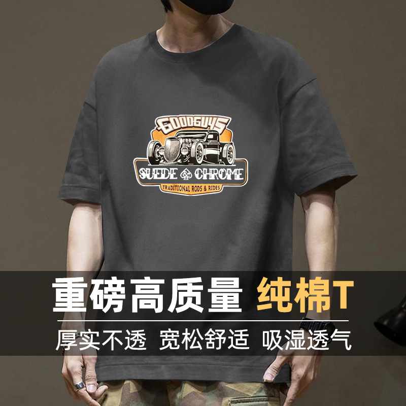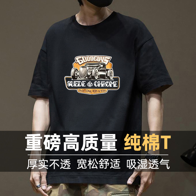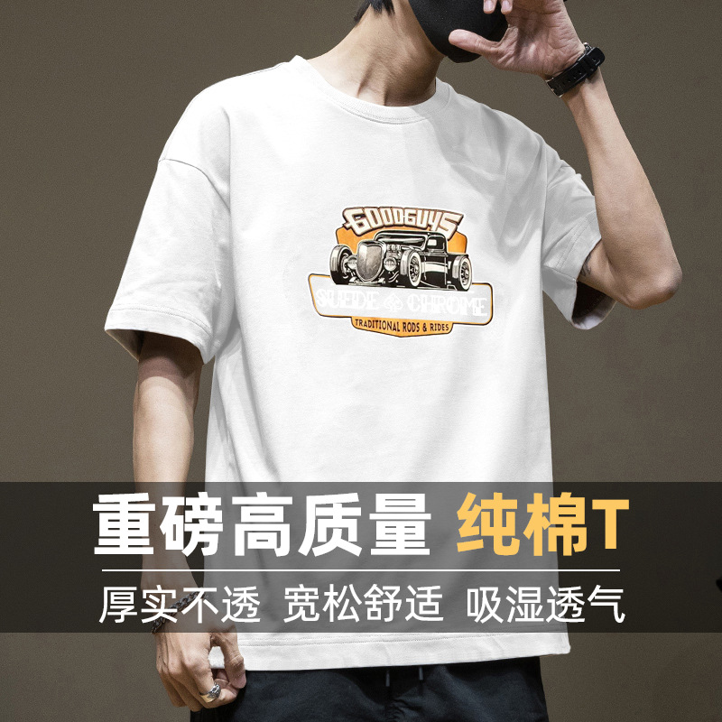 여름 트렌디 브랜드 헤비 220g 티셔츠 남자 반팔 느슨한 플러스 사이즈 남자 플러스 사이즈 면베이스 셔츠스토어 가기