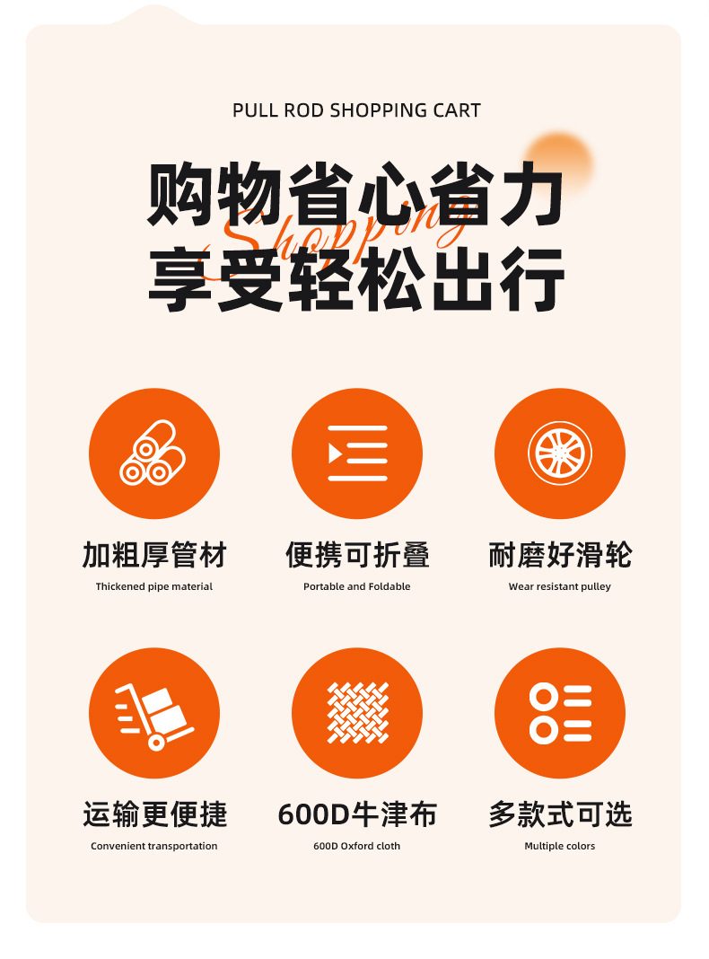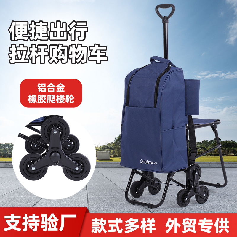 국경 간 소형 가정용 장바구니, 접이식 휴대용 계단 오르기 식료품 카트, 6륜 야외 캠핑 카트