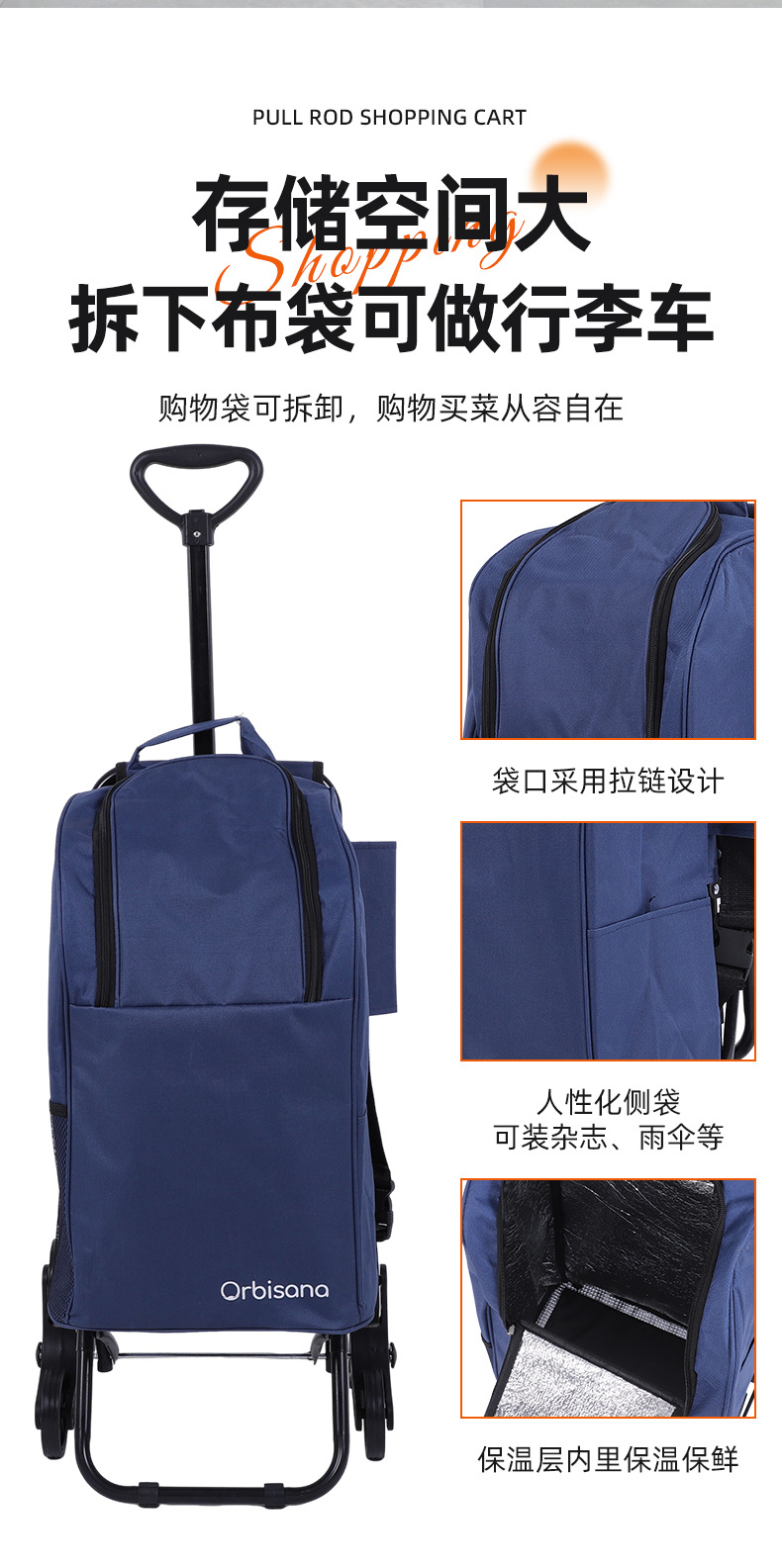 국경 간 소형 가정용 장바구니, 접이식 휴대용 계단 오르기 식료품 카트, 6륜 야외 캠핑 카트스토어 가기