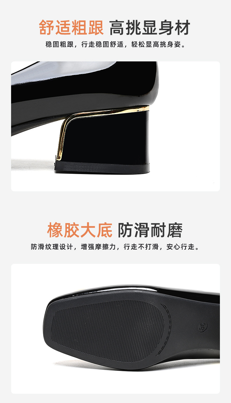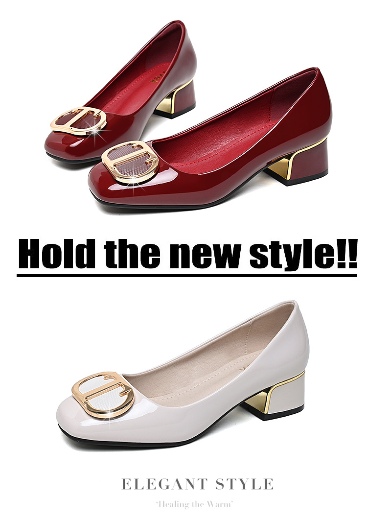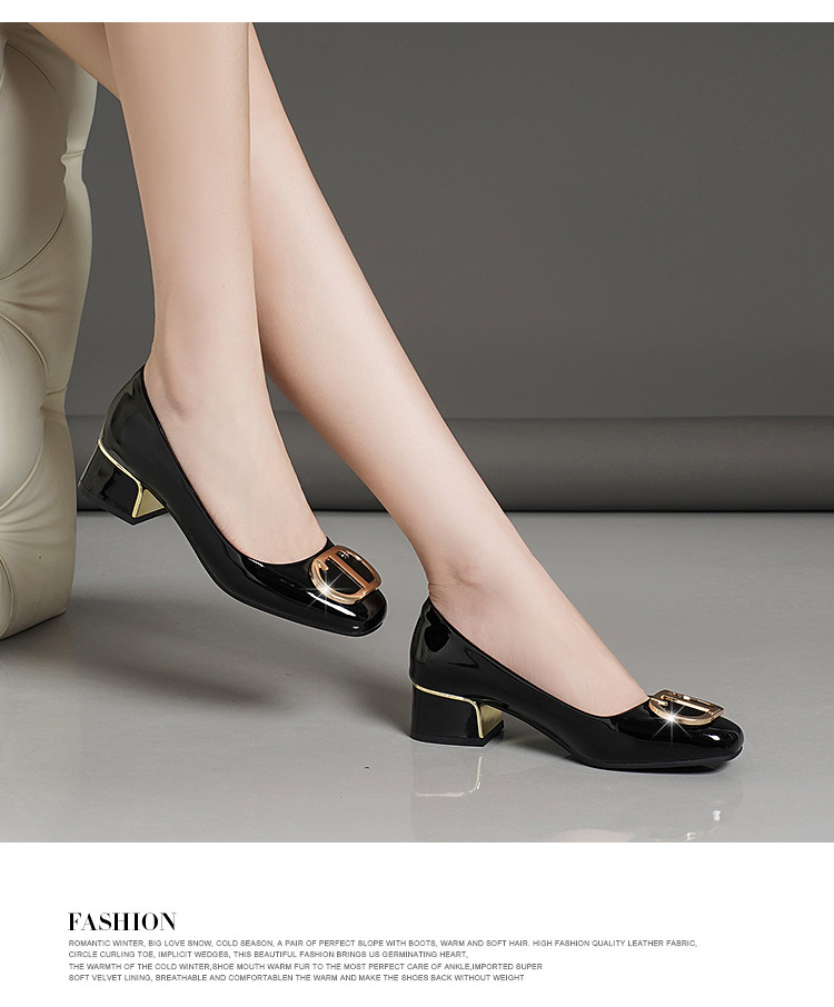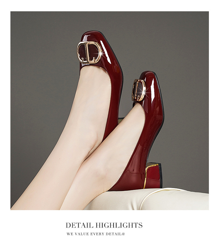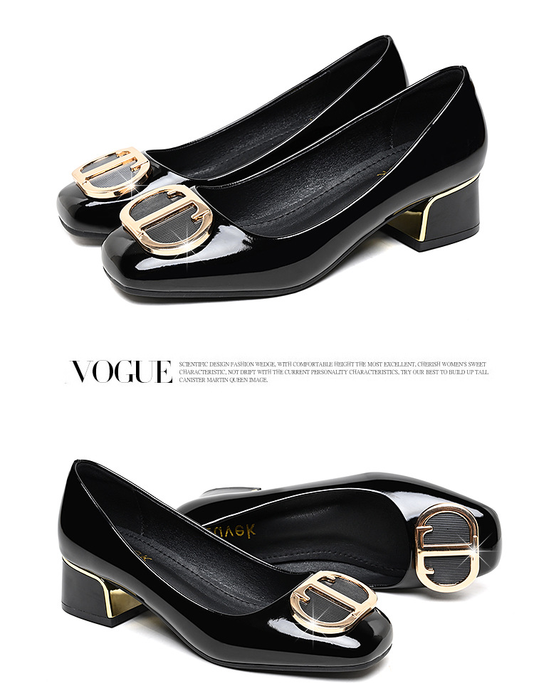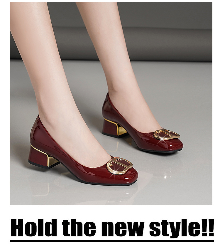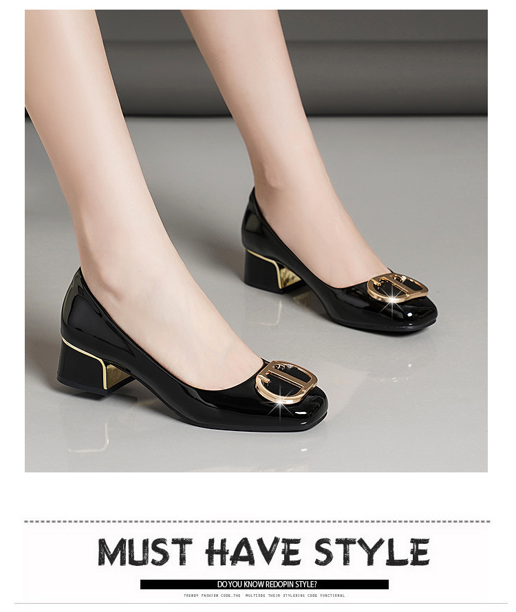 중간 굽 여성화 2025 봄 가을 한국 스타일 다용도 낮은 굽 두꺼운 굽 페이턴트 가죽 우아한 얕은 구두 직장용 통근화스토어 가기