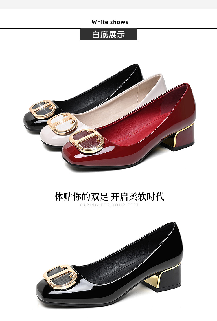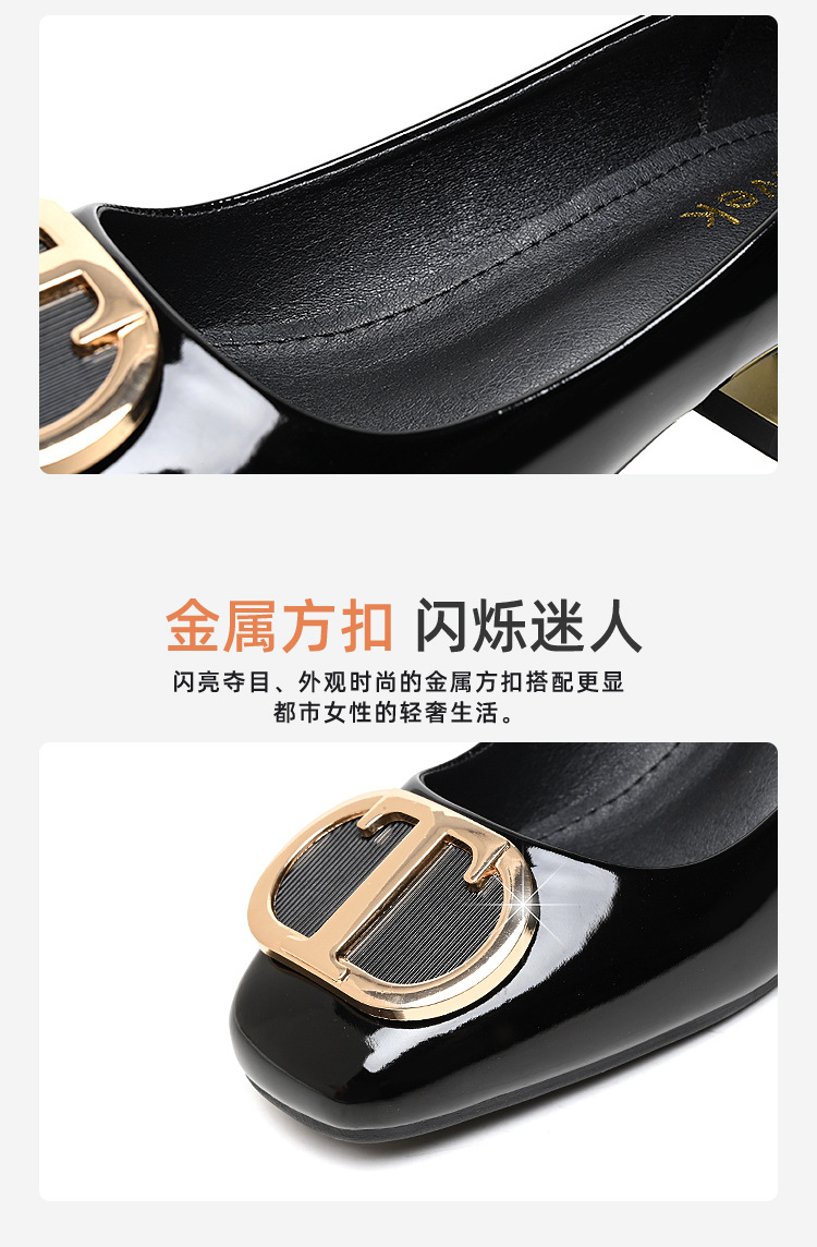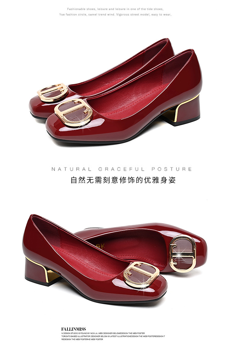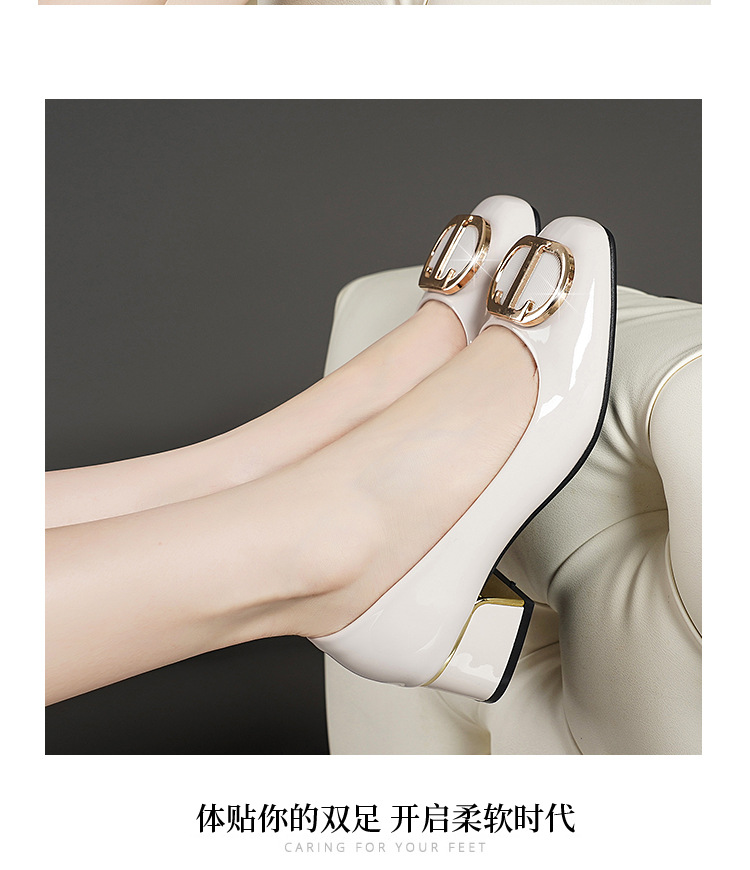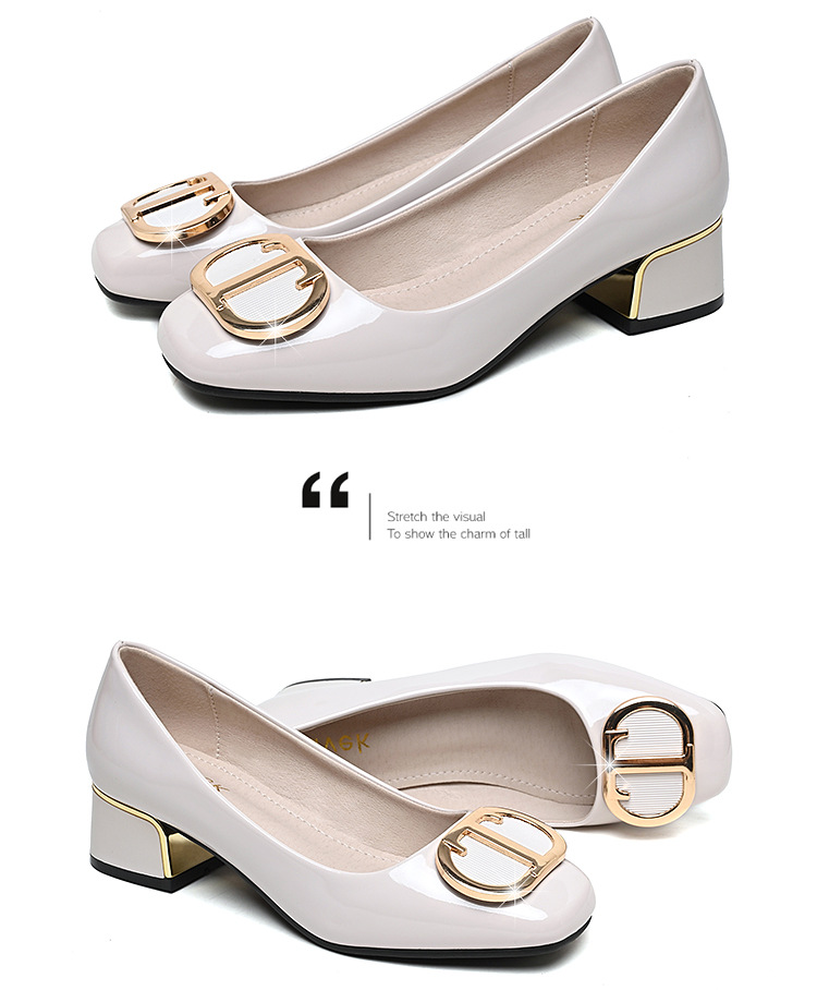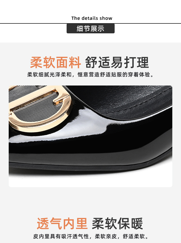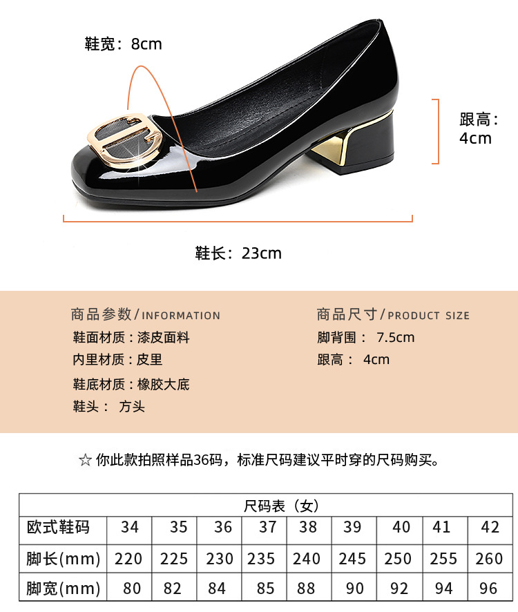 중간 굽 여성화 2025 봄 가을 한국 스타일 다용도 낮은 굽 두꺼운 굽 페이턴트 가죽 우아한 얕은 구두 직장용 통근화스토어 가기