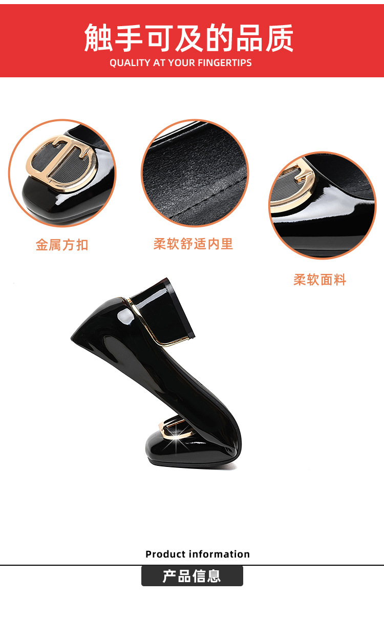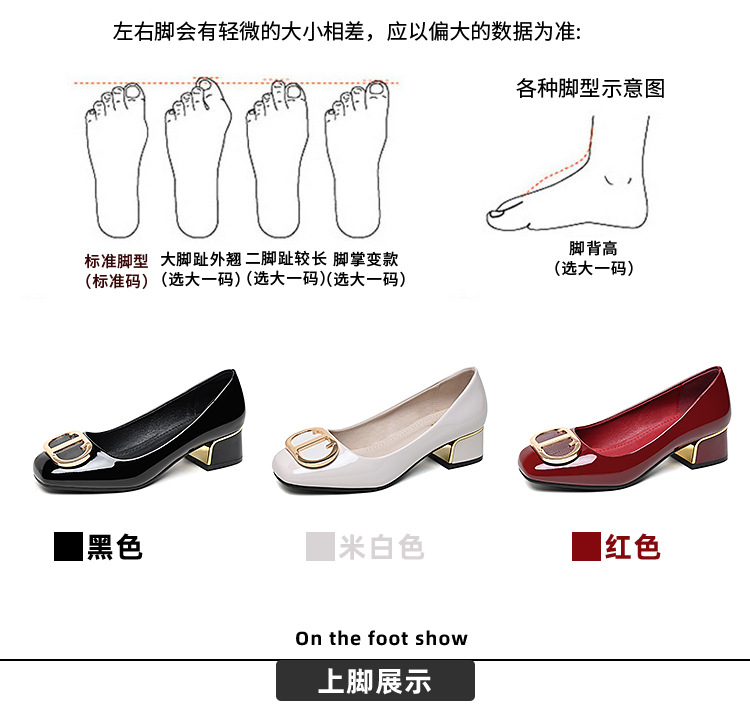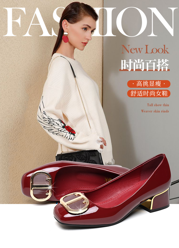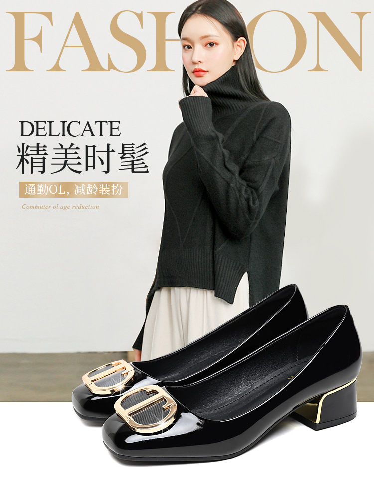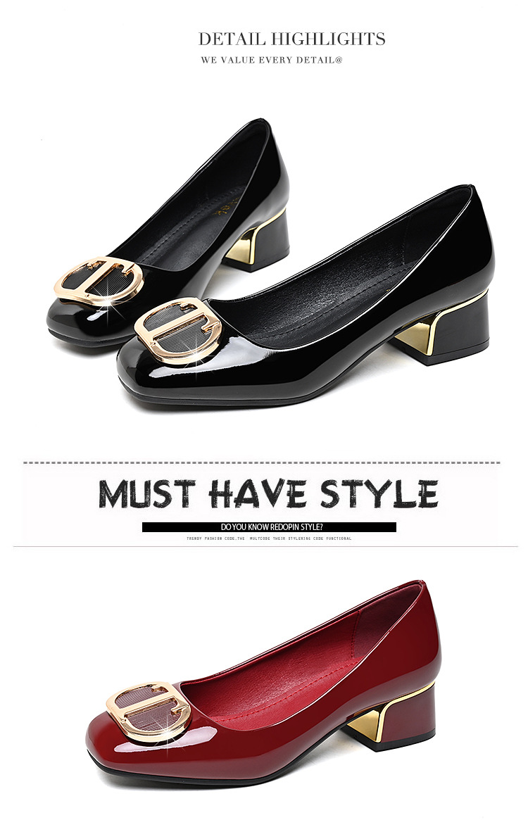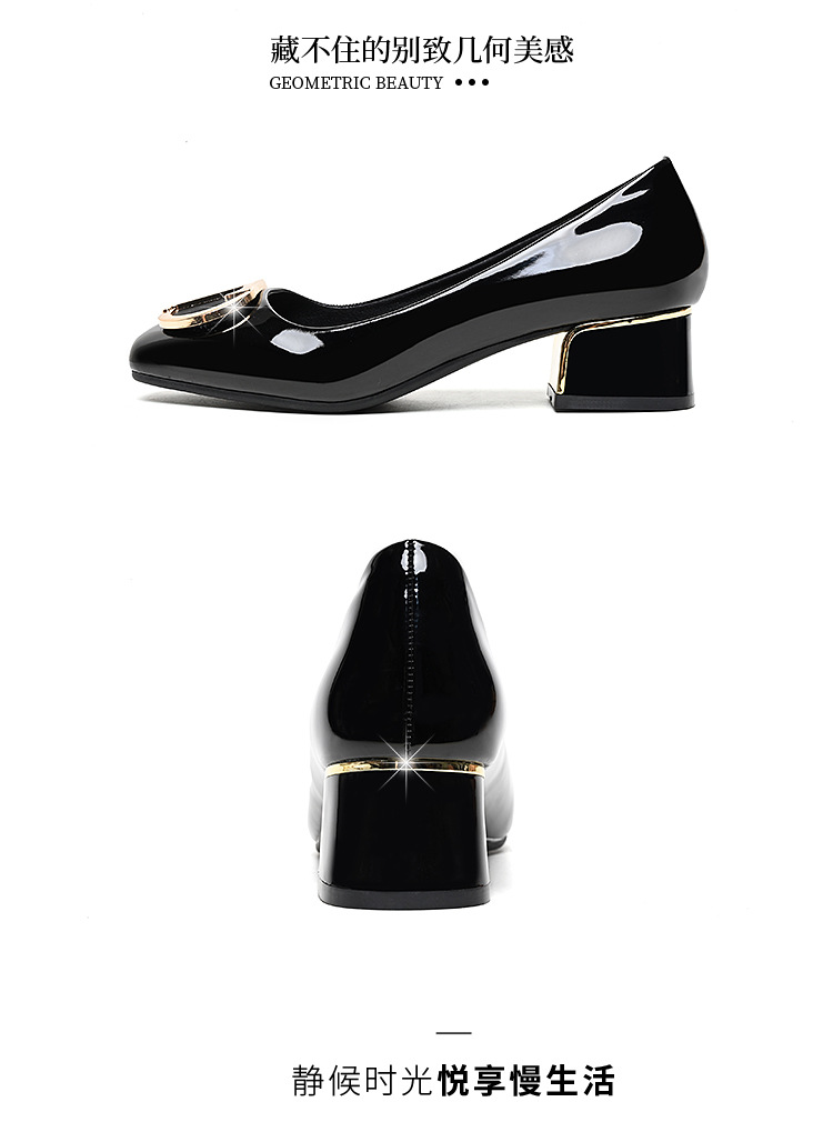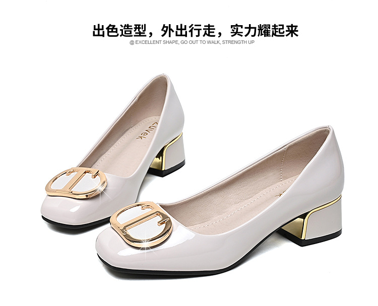 중간 굽 여성화 2025 봄 가을 한국 스타일 다용도 낮은 굽 두꺼운 굽 페이턴트 가죽 우아한 얕은 구두 직장용 통근화스토어 가기