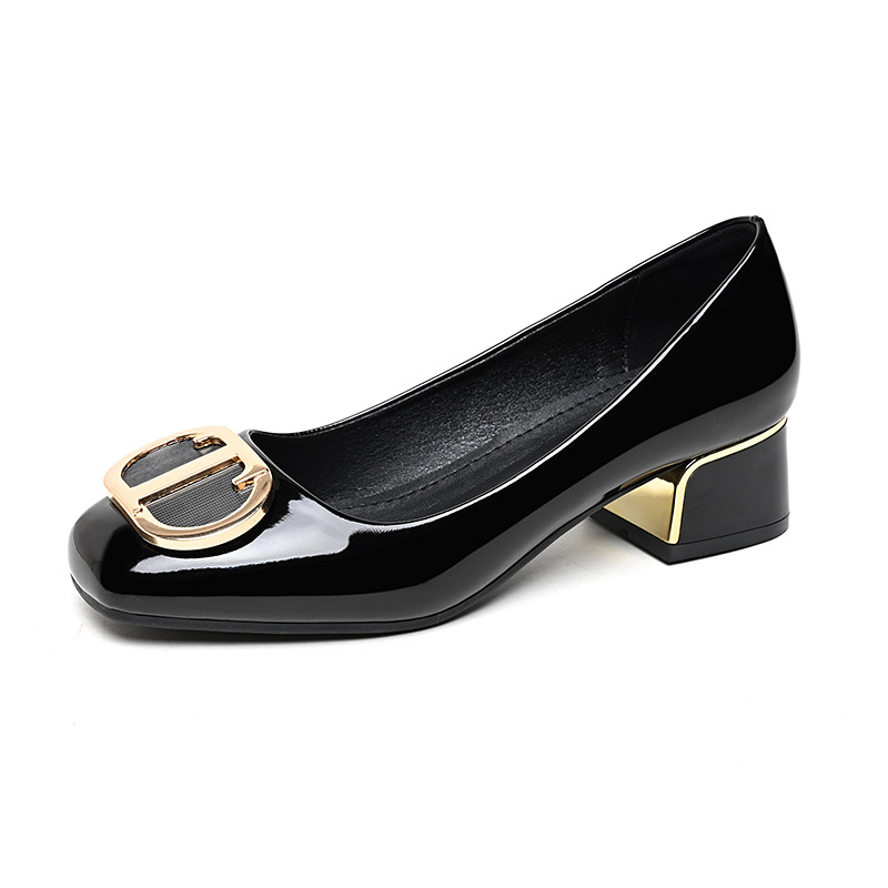 중간 굽 여성화 2025 봄 가을 한국 스타일 다용도 낮은 굽 두꺼운 굽 페이턴트 가죽 우아한 얕은 구두 직장용 통근화