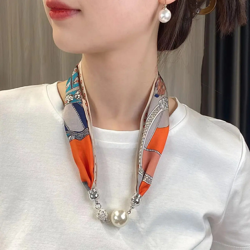 2024 새로운 마그네틱 버클 실크 스카프 패션 작은 실크 스카프 지음 목걸이 헤어 밴드 스트라이프 조커 목걸이
