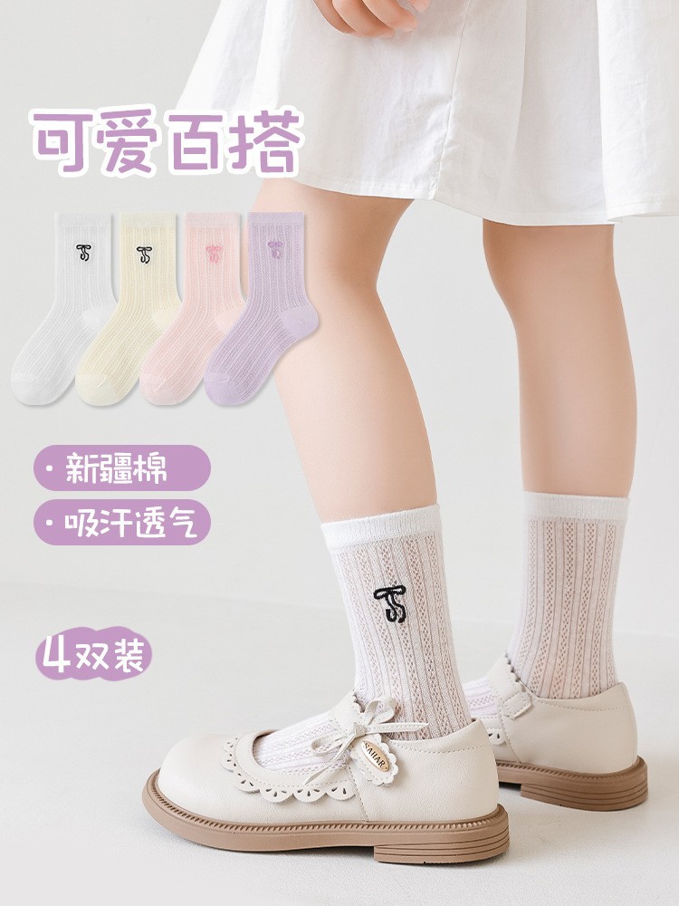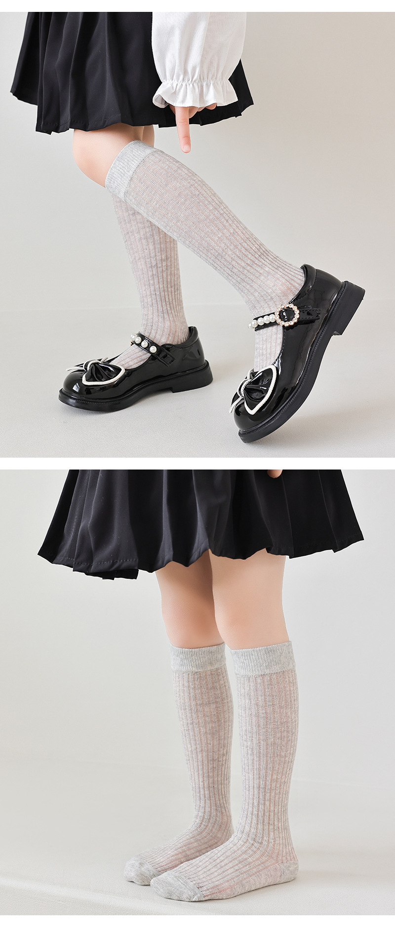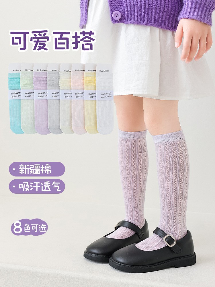 어린이 송아지 양말 봄과 여름 얇은 카드 실크 높은 탄성 단색 높은 양말 여자 학업 스타일 JK 수직 파일 양말 조수