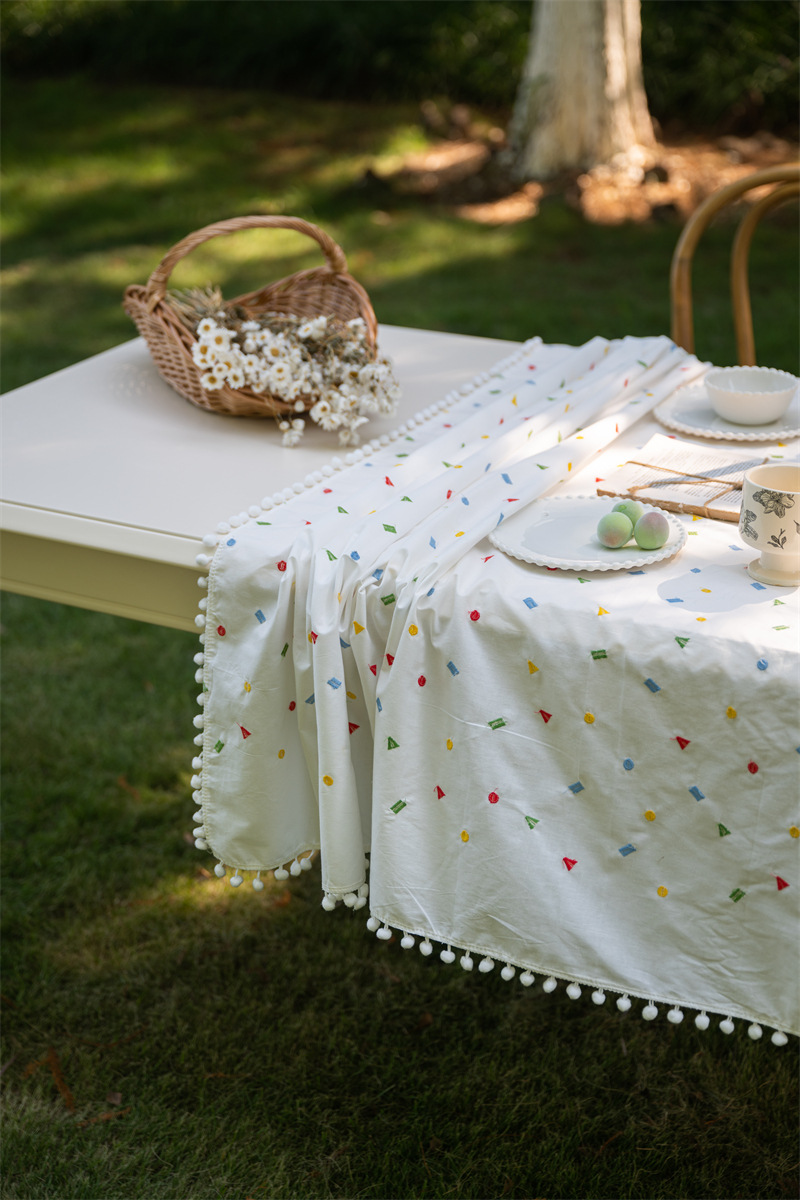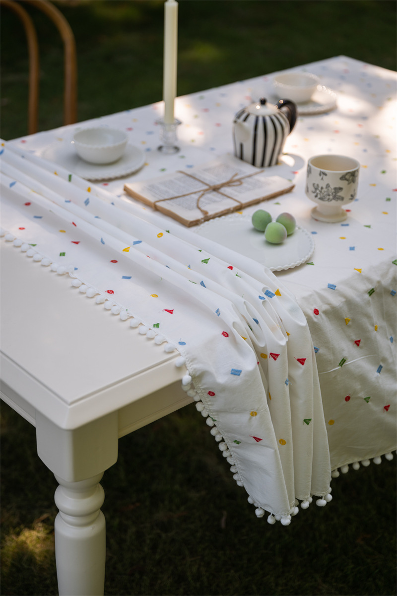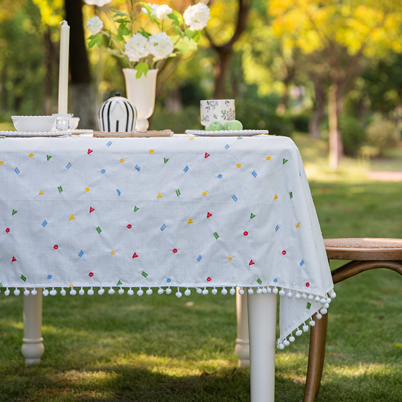 프랑스 자수 기하학적 직사각형 레스토랑 식탁보 작은 신선한 스커트 주름 커피 테이블 커버 천