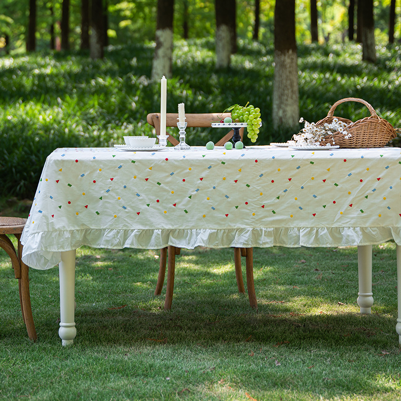 프랑스 자수 기하학적 직사각형 레스토랑 식탁보 작은 신선한 스커트 주름 커피 테이블 커버 천스토어 가기