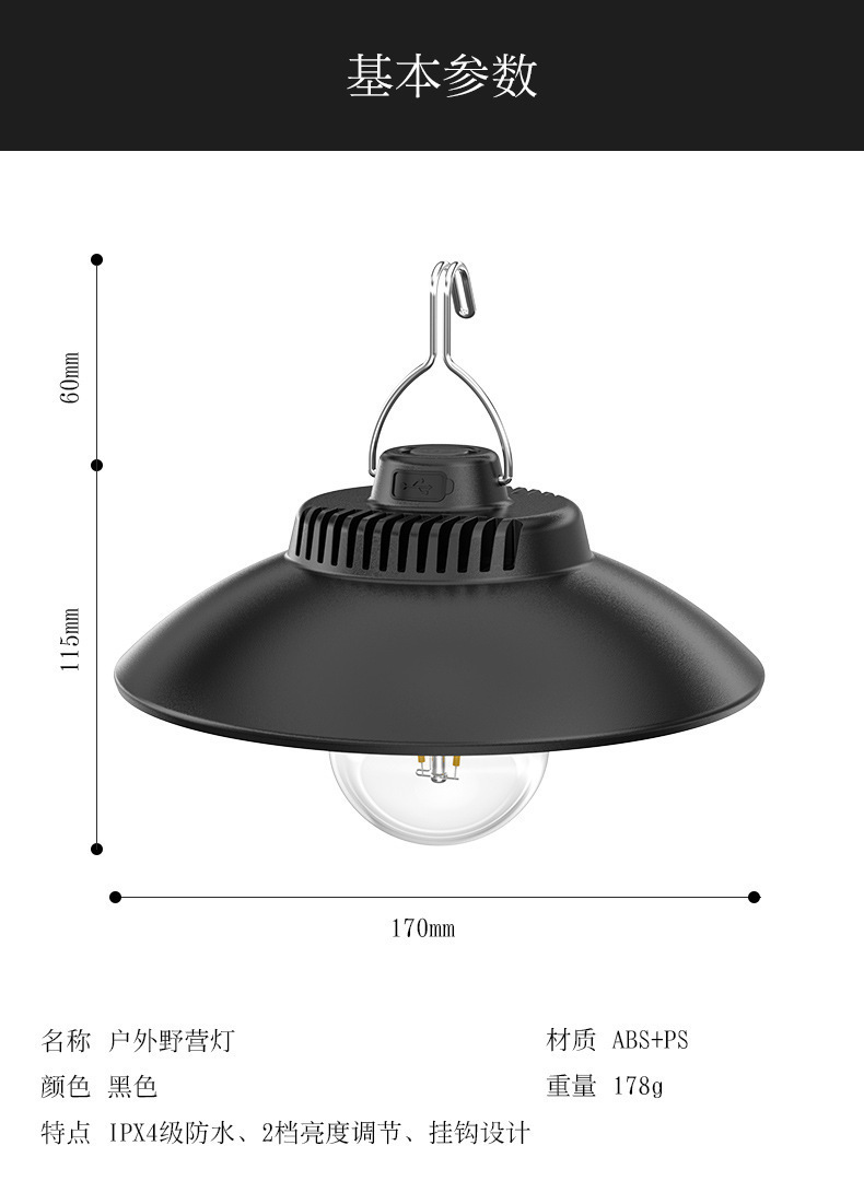 야외 캠핑 조명 텐트 조명 TypeC 비상 충전 조명 대기 조명 매달려 복고풍 조명 캠프 캠핑 조명