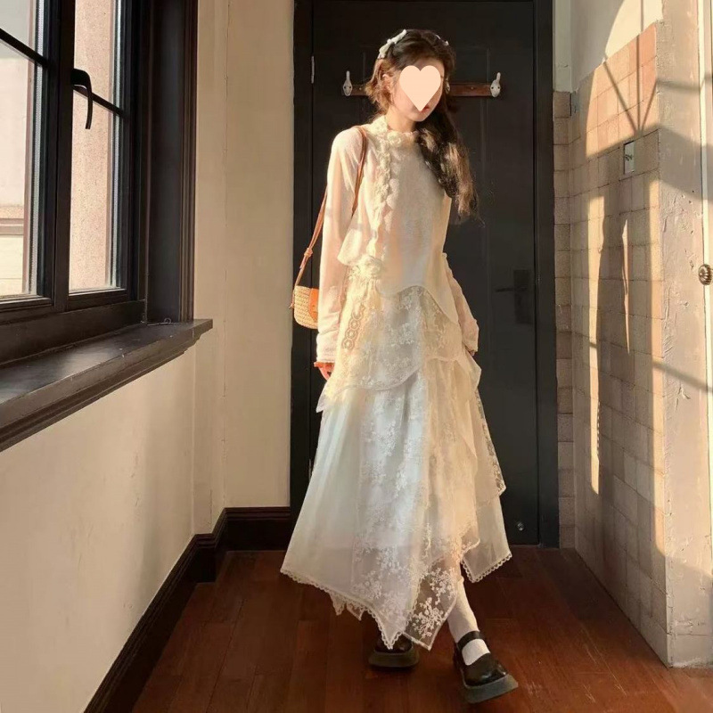 디자인 센스 바느질 레이스 셔츠 플러스 사이즈 원피스 여성의 뚱뚱한 슬리밍 하프 스커트 봄스토어 가기
