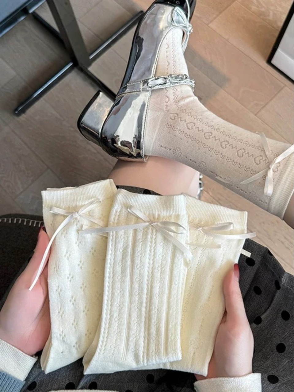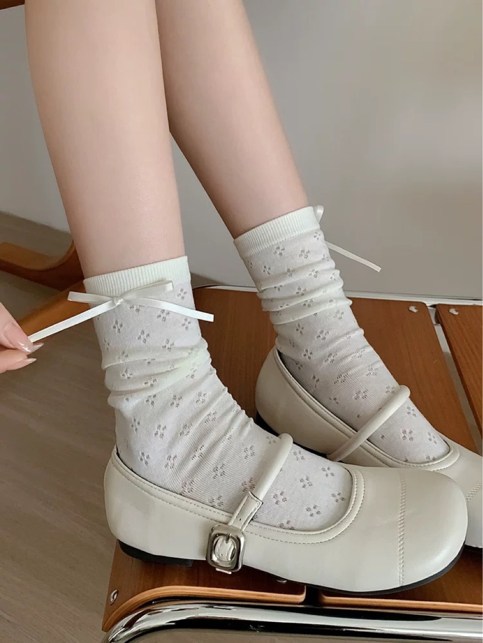 秋冬新品songmu韩国ins灰色丝绒蝴蝶结雪花百搭潮袜棉无骨中筒袜 RMB:4.60