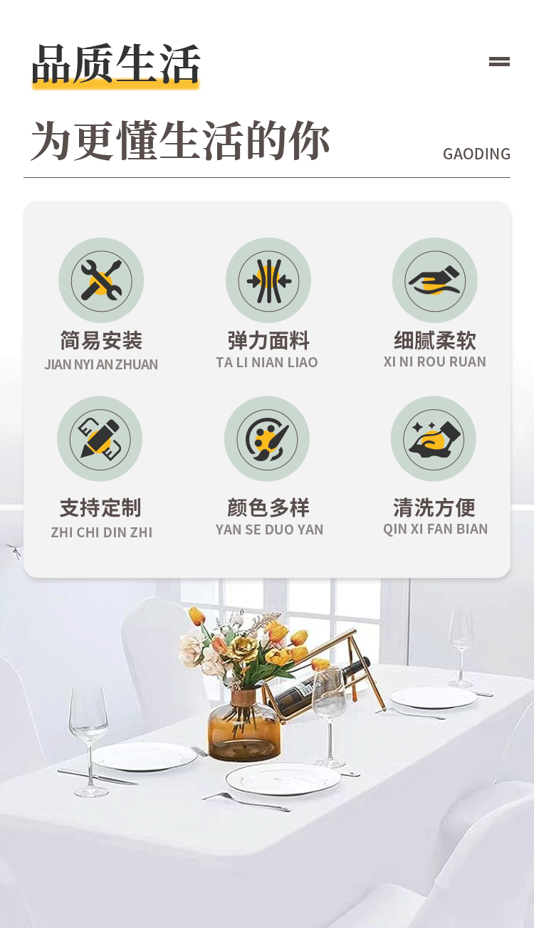 국경 간 무역 탄성 테이블 커버 야외 파티 웨딩 직사각형 탄성 스판덱스 식탁보 칵테일 테이블 천스토어 가기
