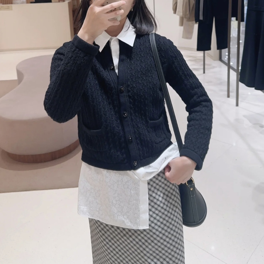 재고 샤오 헤펑 라운드 넥 긴팔 카디건 재킷 여성 봄 하이 엔드 독특한 아름다운 간단한 니트 탑스토어 가기