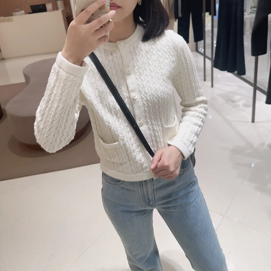 재고 샤오 헤펑 라운드 넥 긴팔 카디건 재킷 여성 봄 하이 엔드 독특한 아름다운 간단한 니트 탑
