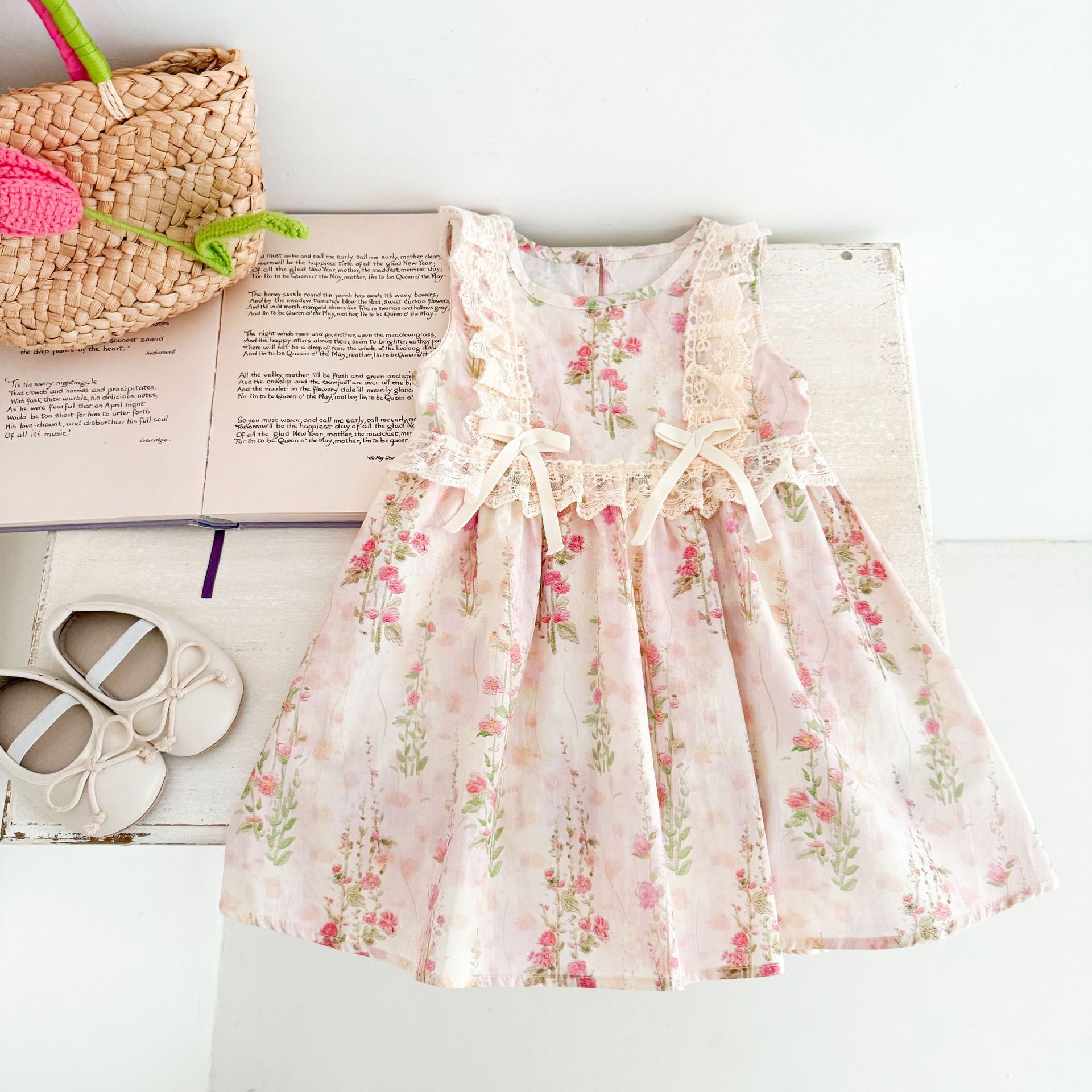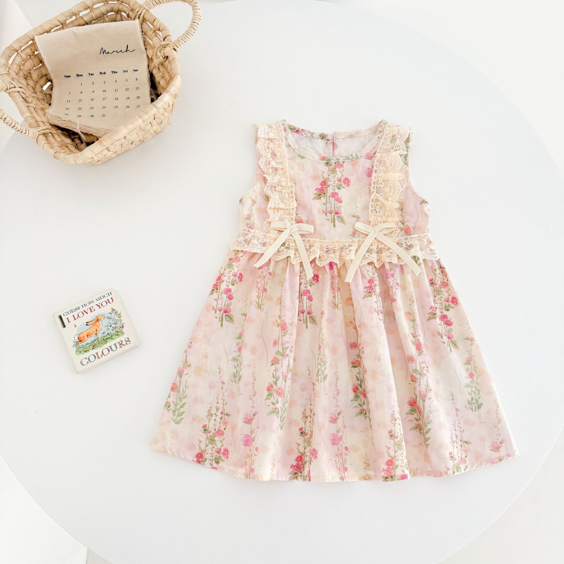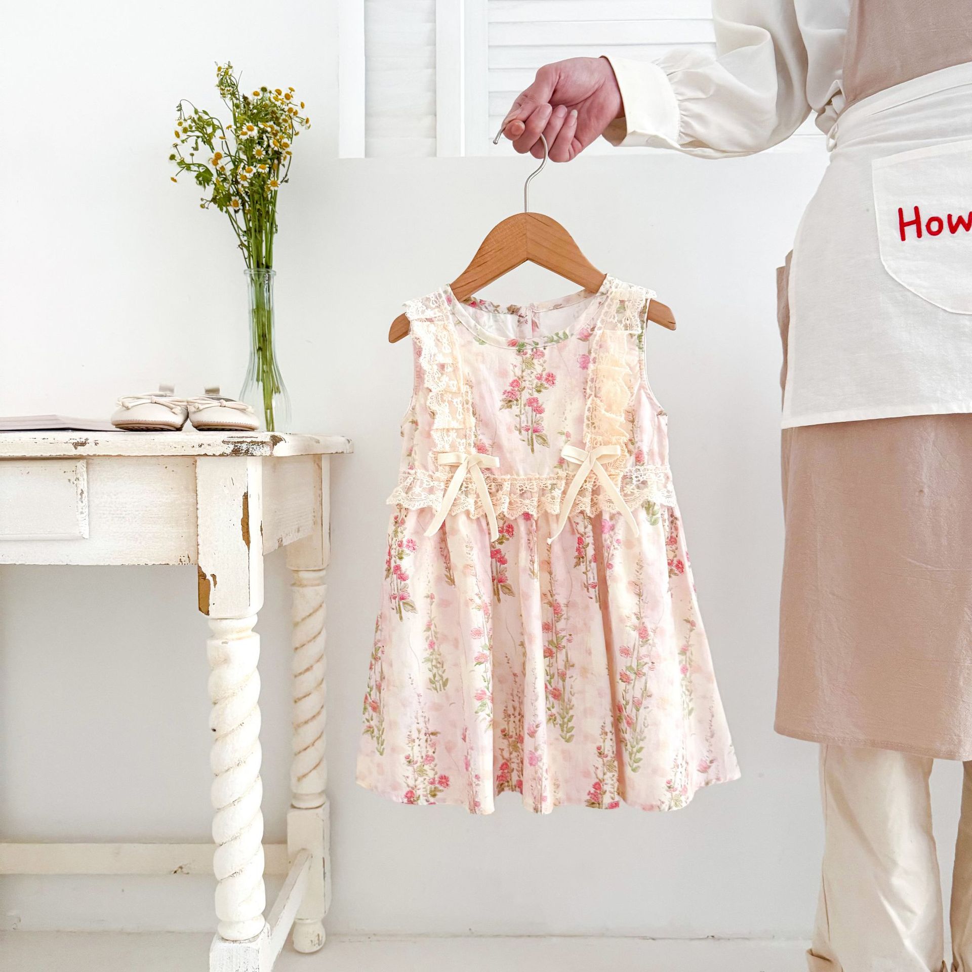 여름 모네 가든 레이스 슬링 공주 원피스 달콤한 아기 소녀 아기 민소매 조끼 인쇄 원피스