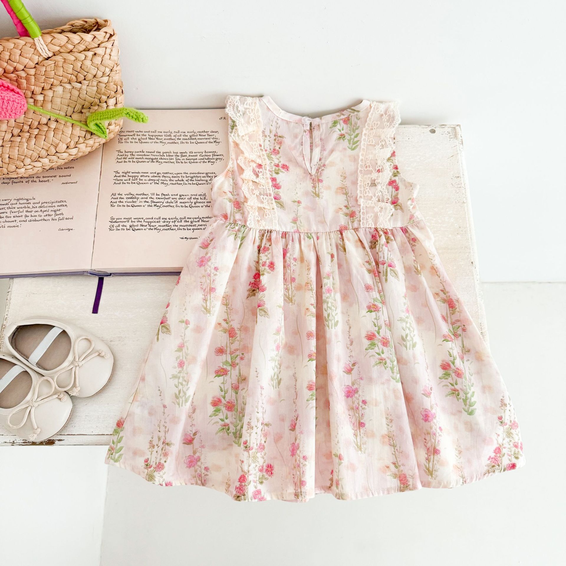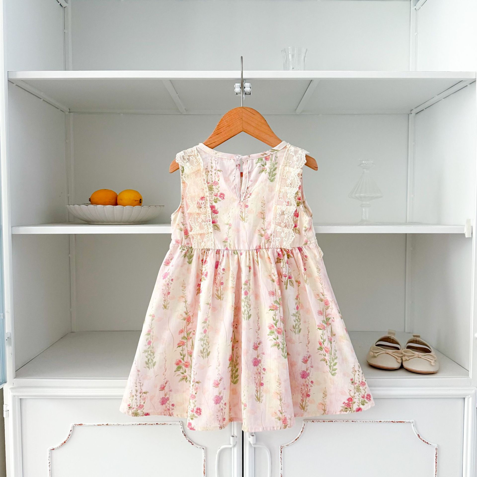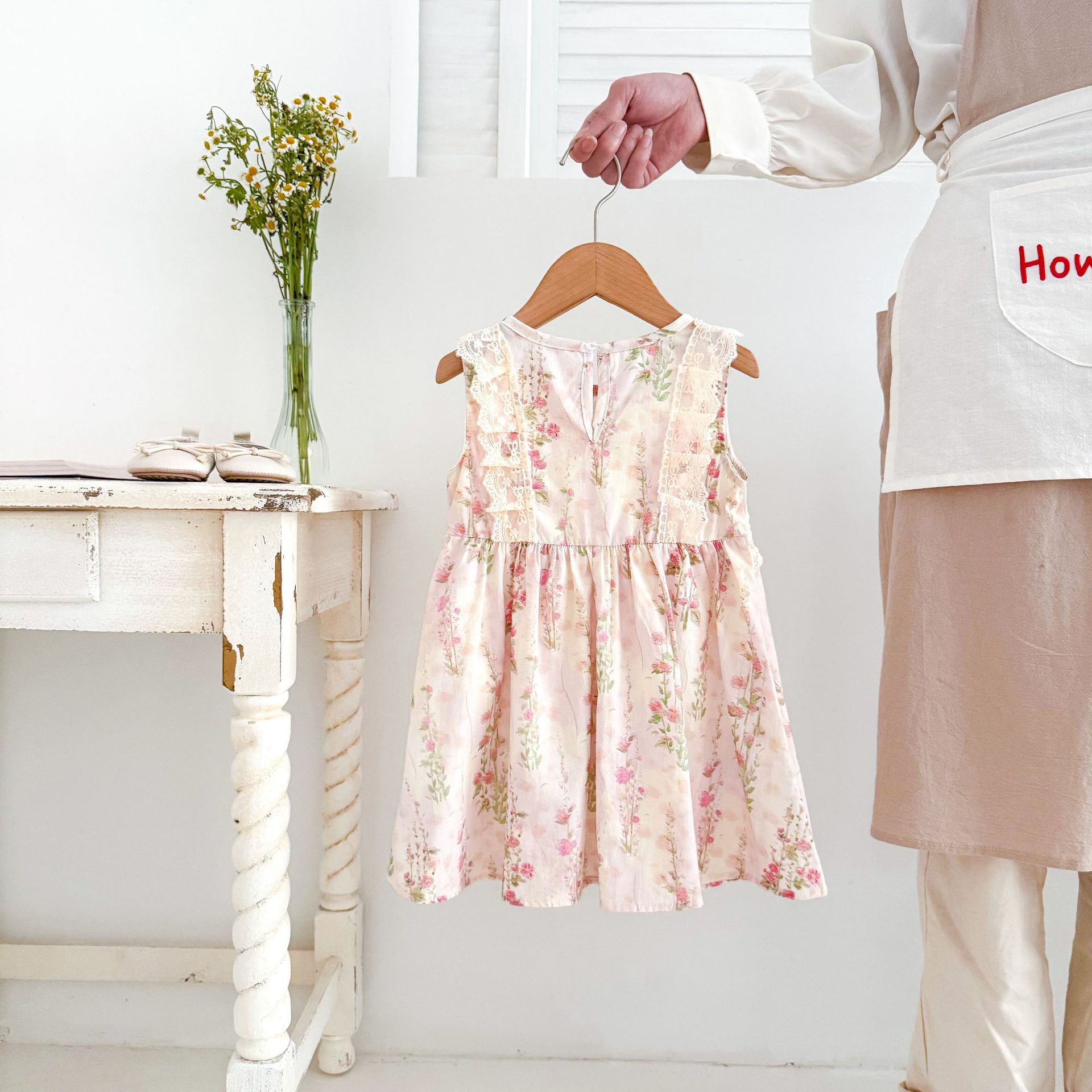 여름 모네 가든 레이스 슬링 공주 원피스 달콤한 아기 소녀 아기 민소매 조끼 인쇄 원피스스토어 가기