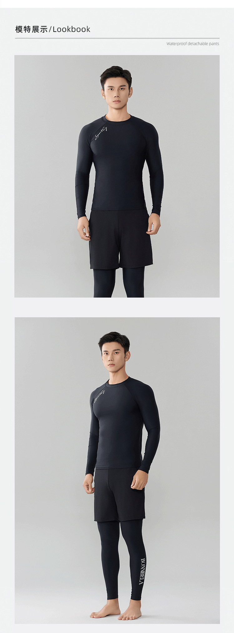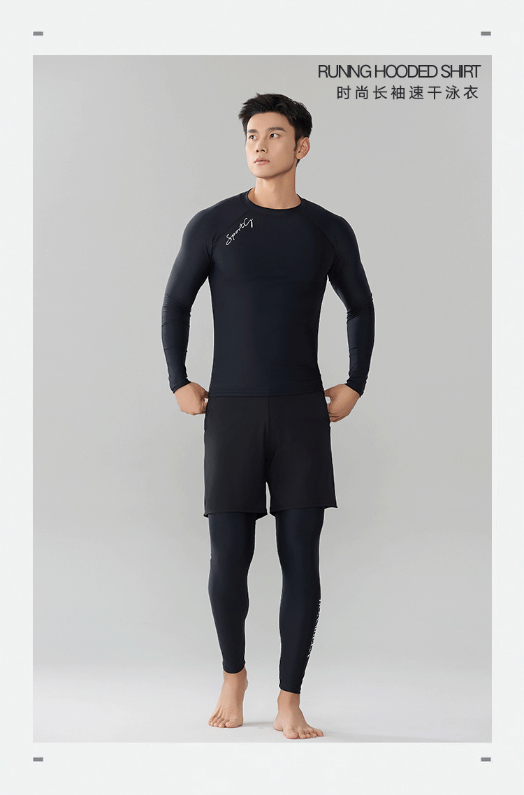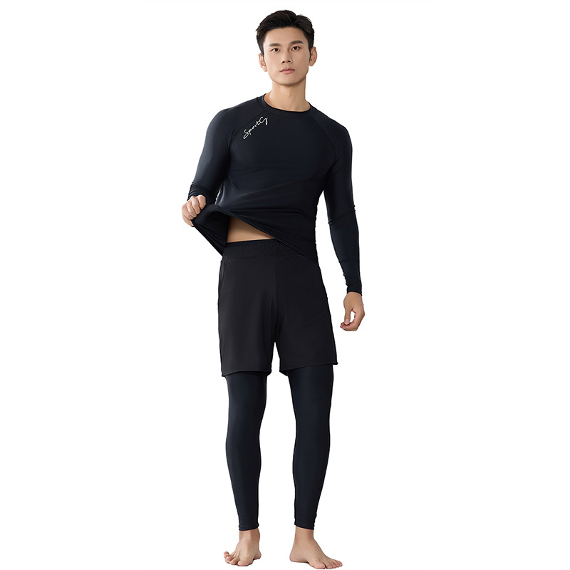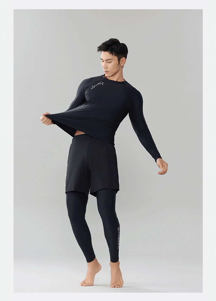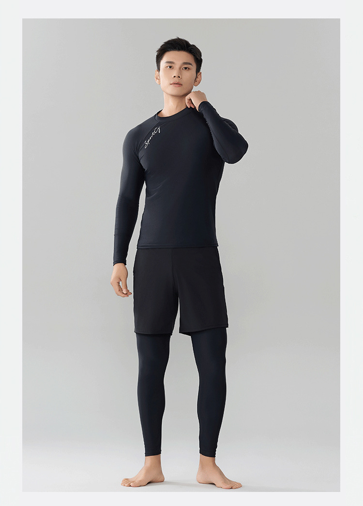 Trisass Split 3 피스 남자 수영복 5 점 바지 프로 스포츠 긴팔 바지 선 스크린 플러스 사이즈 L-7XL스토어 가기