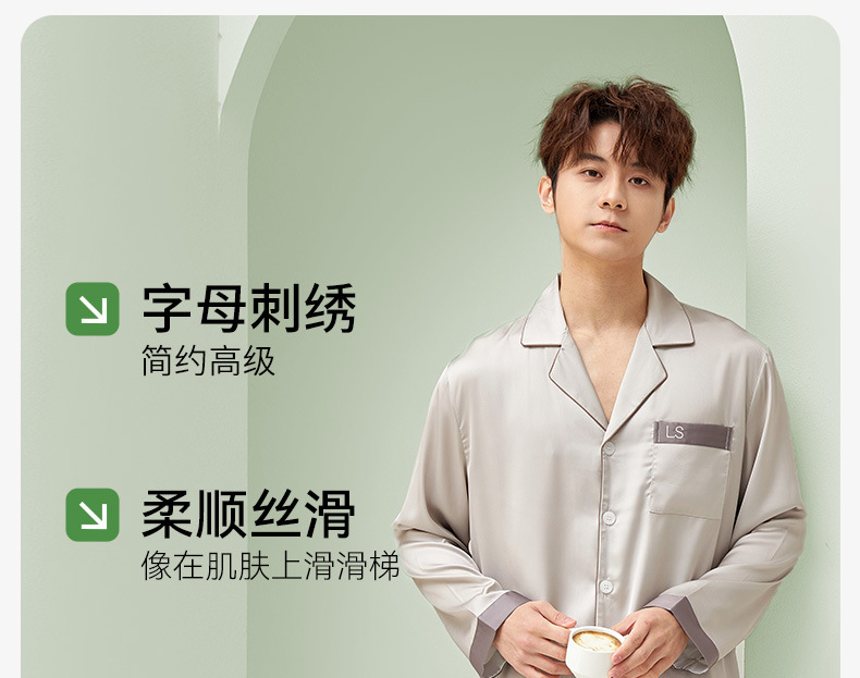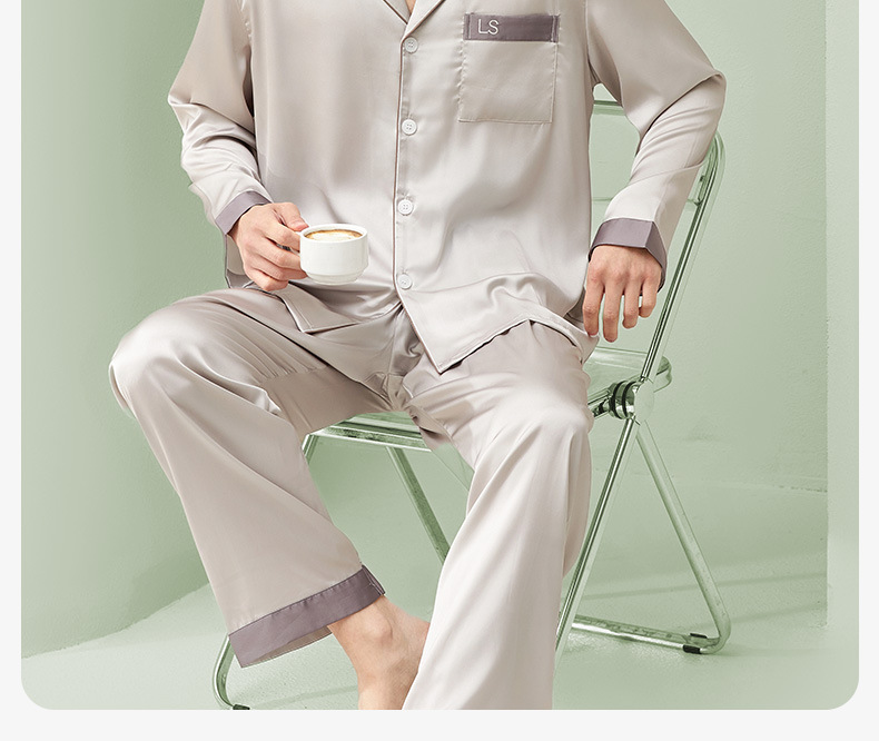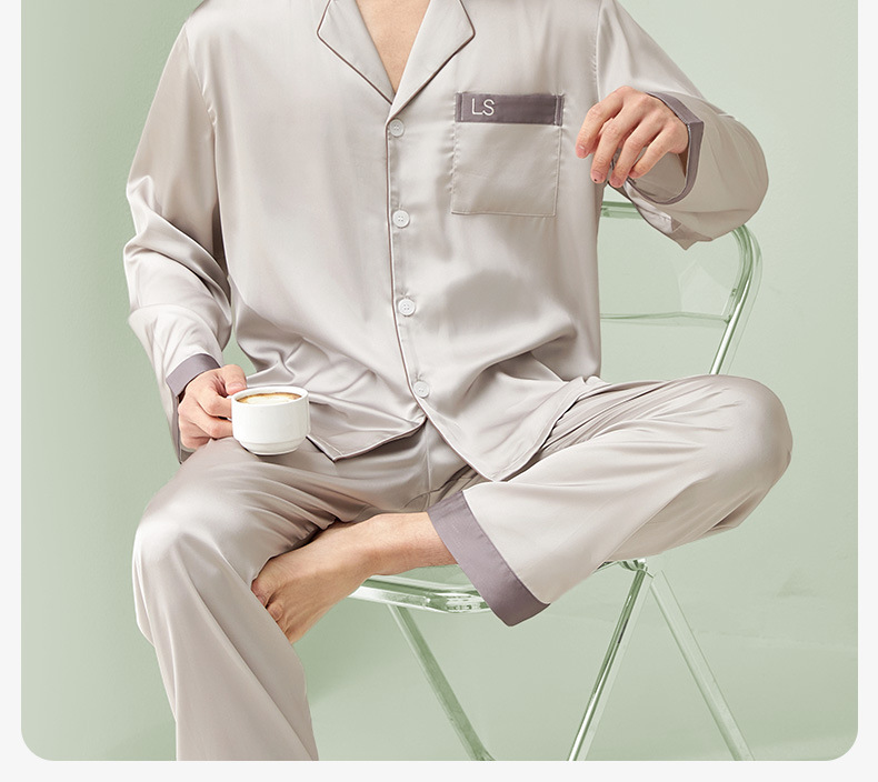 [최소] 봄 · 가을 새 집옷 남성용 상쾌한 실키아이스실크 남성용 파자마 고급 감각 남자친구
